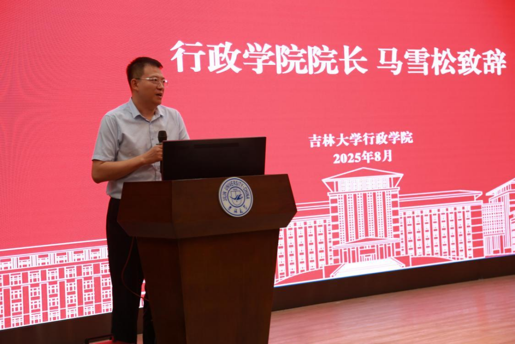 马雪松以“学院—学科—学业”为主线发表致辞。他代表学院先对2025级全体MPA新生表示欢迎,并从学院历史传统、学科布局特色及学业规划三个方面,深入阐释了ManHub