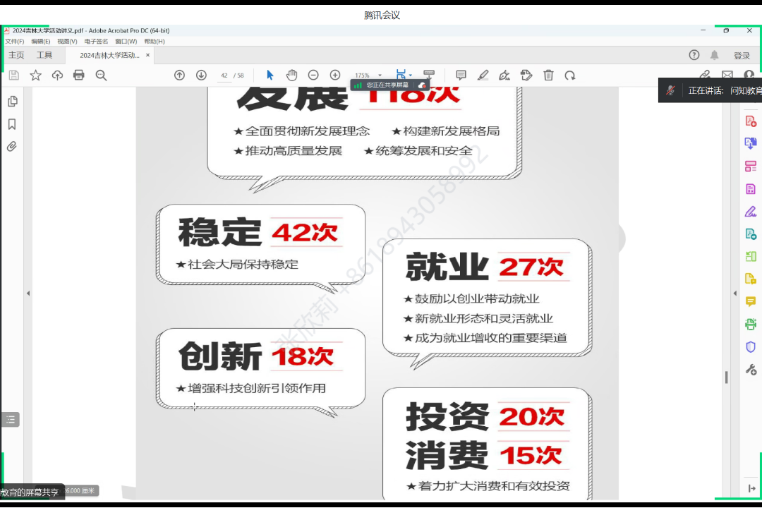 白绍新老师以民生、时政话题为例,强调“政府思维在公务员面试过程中十分重要,回答问题要注意精度、广度、深度、高度”,并结合吉林省省考面试,从面试题型及对应的解题技巧方面进行了详细的讲解,更有针对性地提高考生们的答题能力。他重点讲解了综合分析能力,并详细讲述了社会现象、政策理解、名言警句、哲理故事、观点类和图画类六大类题型,随后简单介绍了计划组织协调、言语理解与表达、岗位匹配性等多方面内容,老师在讲解过程中结合公务员考试的真题进行剖析,深入分析各类题型的解题技巧和答题思路,精准地训练了同学们的答题逻辑。
