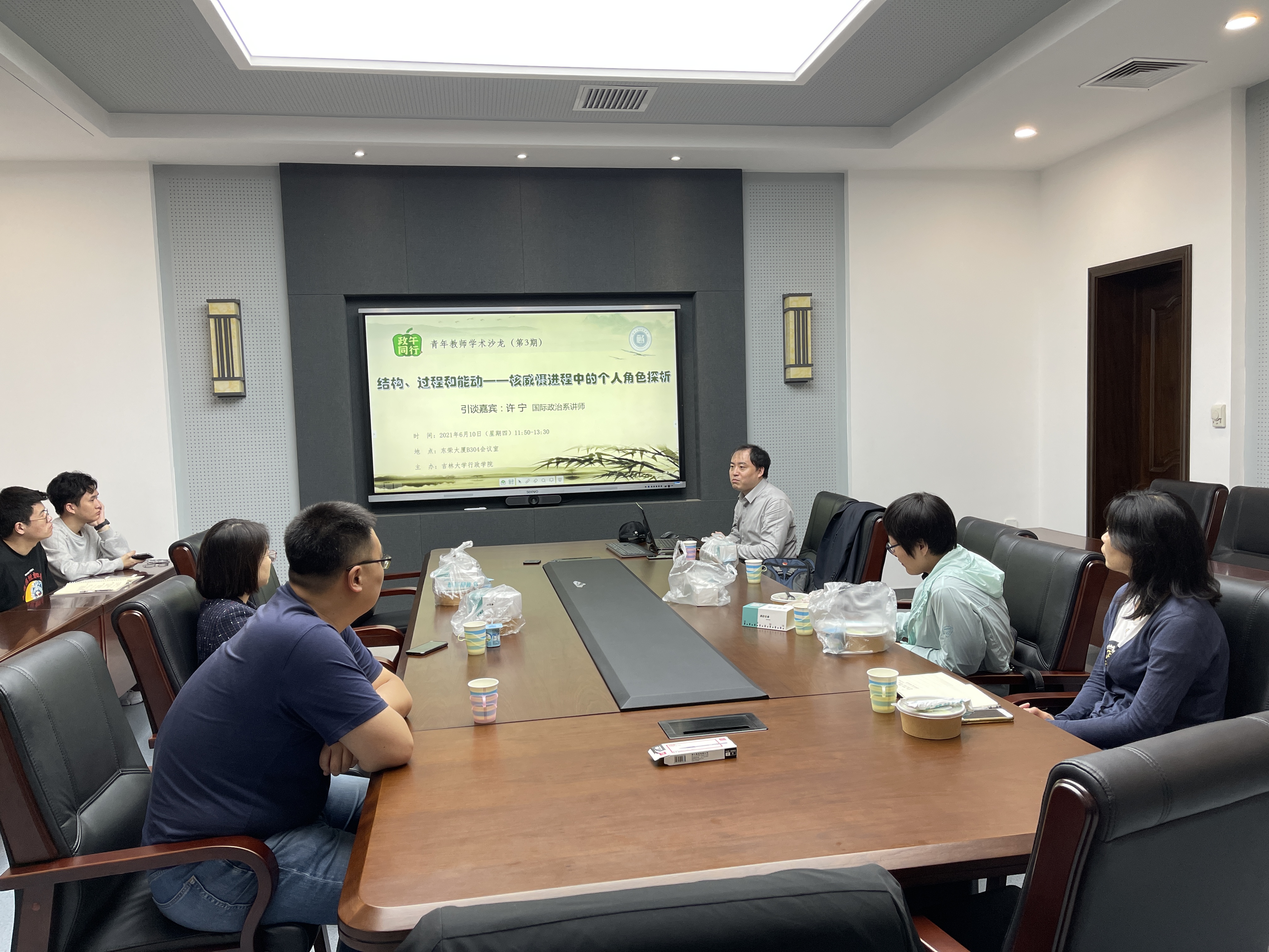 马雪松教授在总结致辞时表示,许宁老师是学院青年教师值得学习和仿效的楷模,通过缜密的逻辑将散乱的术语整合到理论框架中,这次学院内部的对话和交流有利于打破政治学和国际政治的研究壁垒。在感谢许宁老师分享自己深入思考的结晶后,马雪松教授也分享了自身对国际政治理论的内生创新的理解,应持续跟踪前沿研究成果、深入反思已有学术命题、综合运用社会科学方法、切实关照国际国内政治、积累分析相关典型案例、敏锐捕捉把握理论张力、积极拓展自我思维空间、著述传播精品心得成果。
