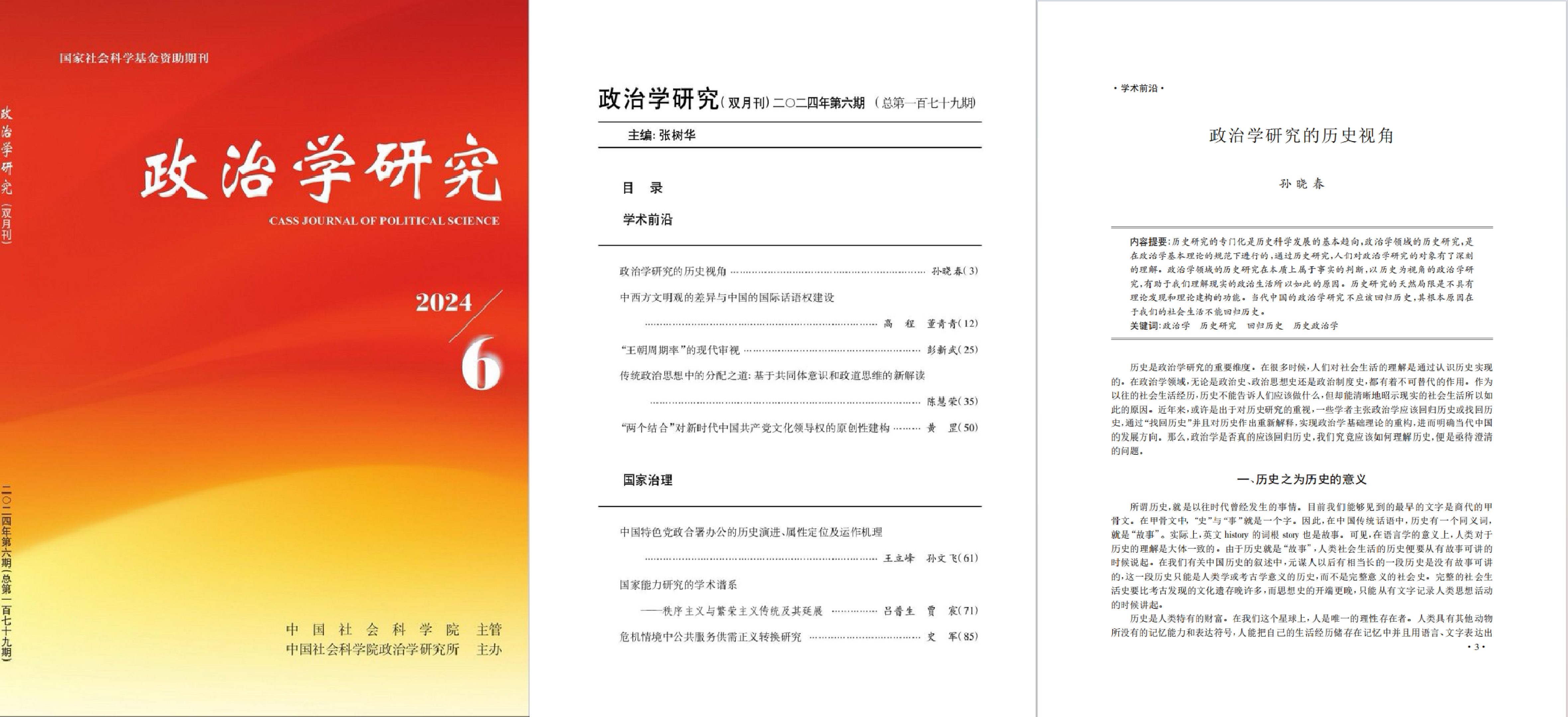 孙晓春教授研究成果《政治学研究的历史视角》在《政治学研究》2024年第6期发表。