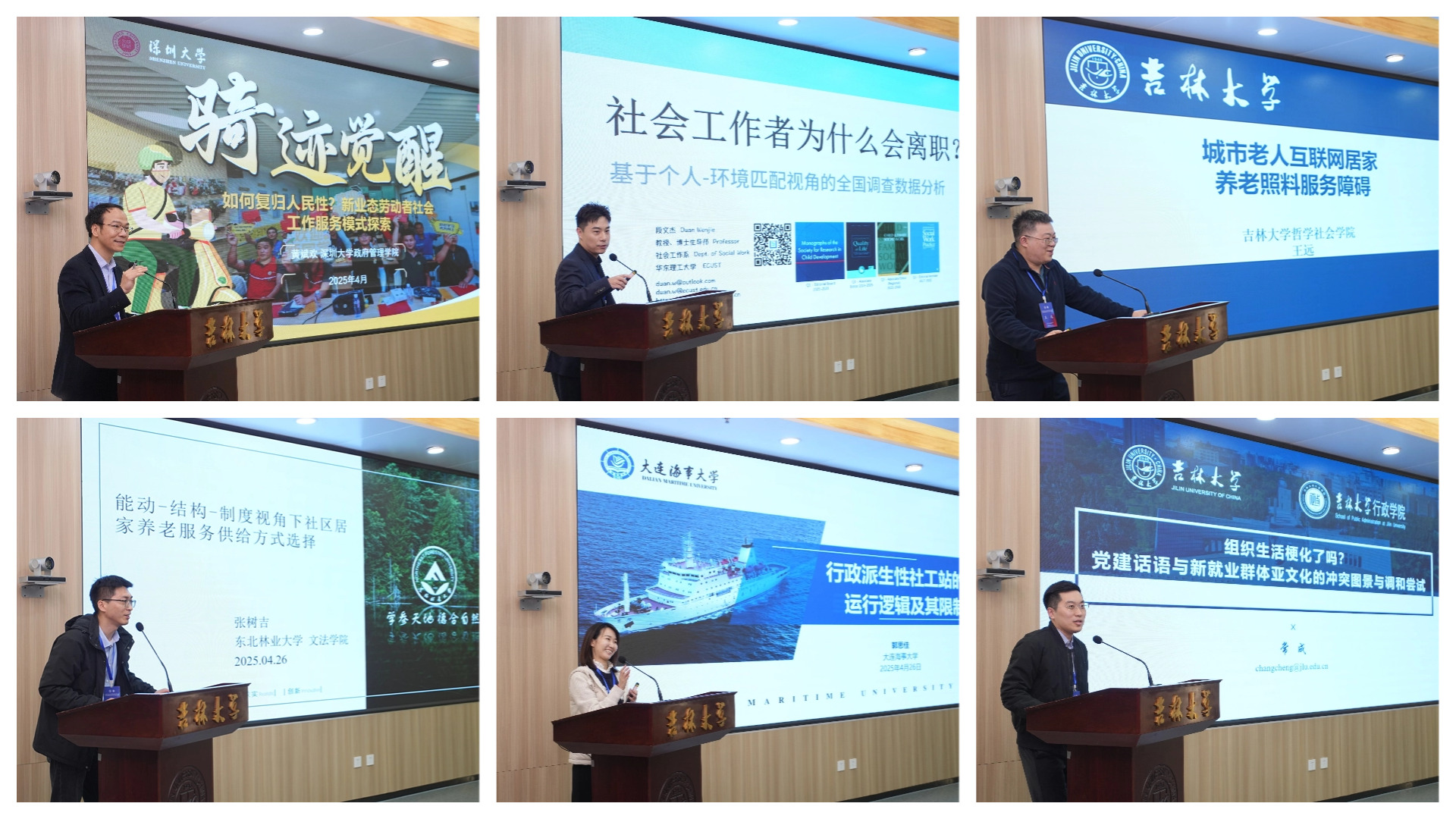 MPA教育中心副主任常成讲师分别以《如何复归人民性?新业态劳动者社会工作服务模式探索》《社会工作者为什么会离职?——基于个人—环境匹配视角的全国调查数据分析》《城市老人互联网居家养老照料服务障碍》《能动—结构—制度视角下社区居家养老服务供给方式选择》《行政派生性社工站的运行逻辑及其限制》《组织生活梗化了吗?党建话语与新就业群体亚文化的冲突图景与调和尝试》为题发表演讲。