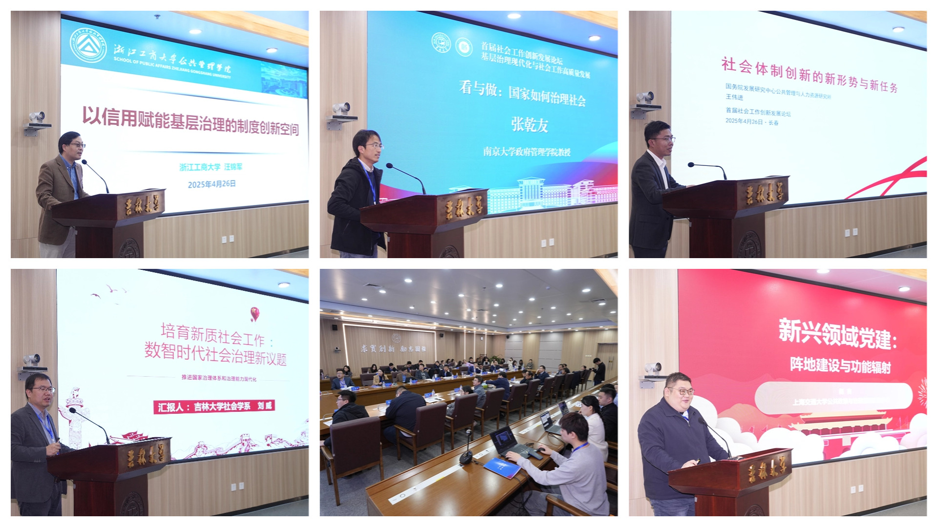 东北振兴发展研究院副院长、哲学社会学院刘威教授,“政治学人”负责人、上海交通大学国际与公共事务学院赵吉副教授分别以《以信用赋能基层治理的制度创新空间》《看与做:国家如何治理社会》《社会体制创新的新形势新任务》《培育新质社会工作:数智时代社会治理新议题》《新兴领域党建:阵地建设与功能辐射》为题发表演讲。
