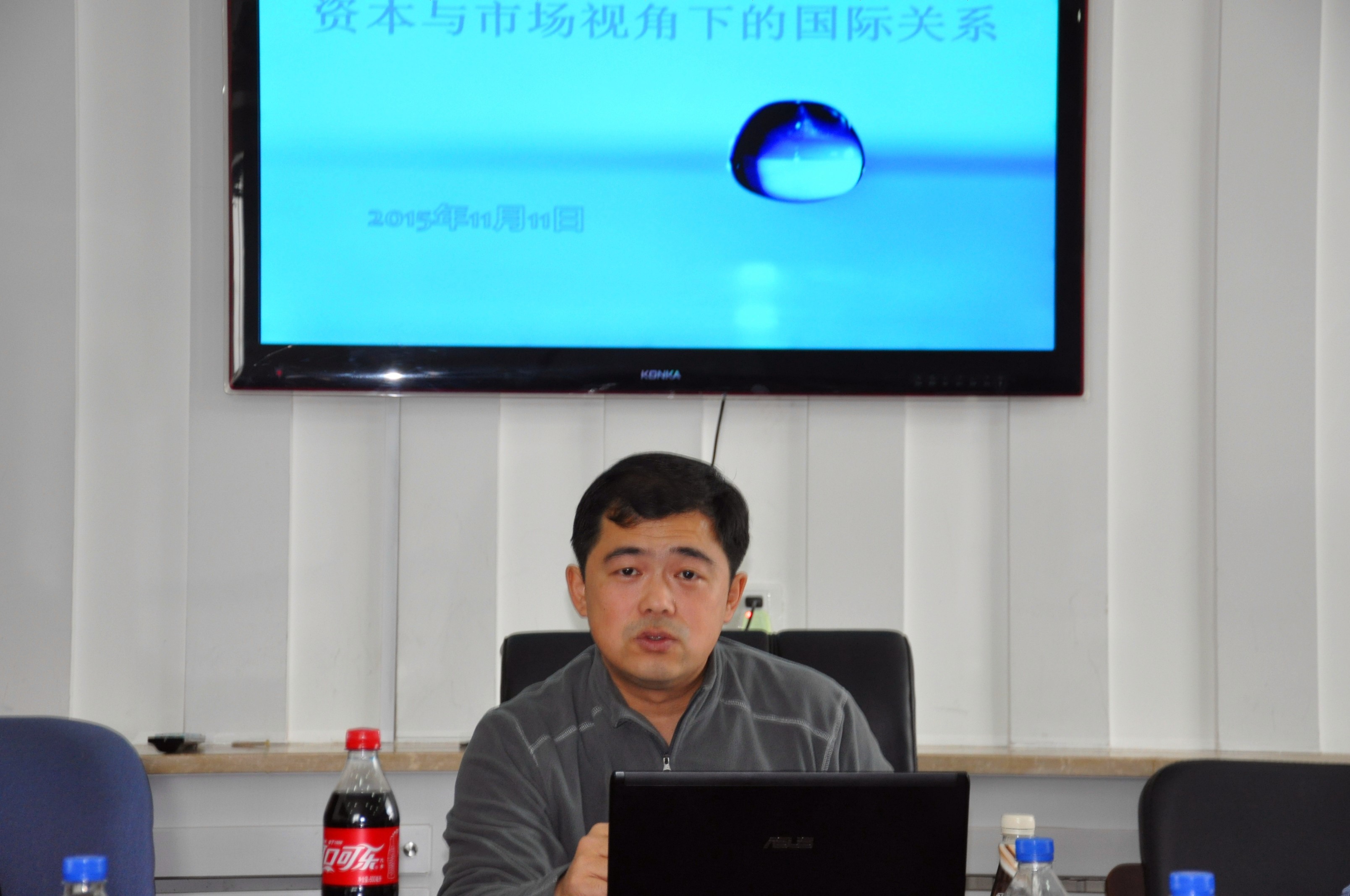 主旨报告中,张东宁副教授以近期跨太平洋伙伴关系协定(TPP)取得实质性突破事件为背景,围绕“资本与市场视角下的国际关系”问题,从“市场的由来”、“市场扩张与区域一体化的关系”、“TPP对国际关系的影响”、“TPP诞生的动力”与“中国的努力”等五方面进行了深刻地讲述并发表了独到的见解。