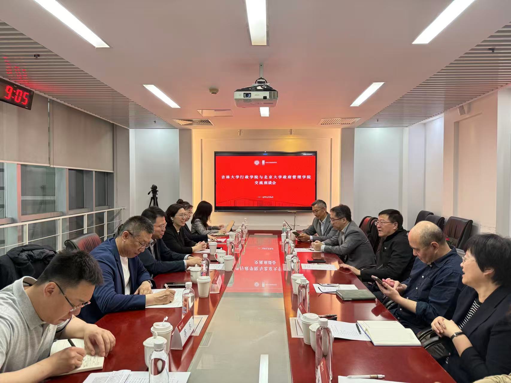 院长马雪松带队于2025年5月9日赴北京大学政府管理学院开展专题调研。学院党委副书记史慕华,副院长刘雪华、刘畅,学院办公室主任蒋乐,科研办公室主任王斯靓参加此次调研。北京大学政府管理学院院长燕继荣,副院长陆军、黄璜、严洁、田凯,党委副书记郑力璇等共同参会。
