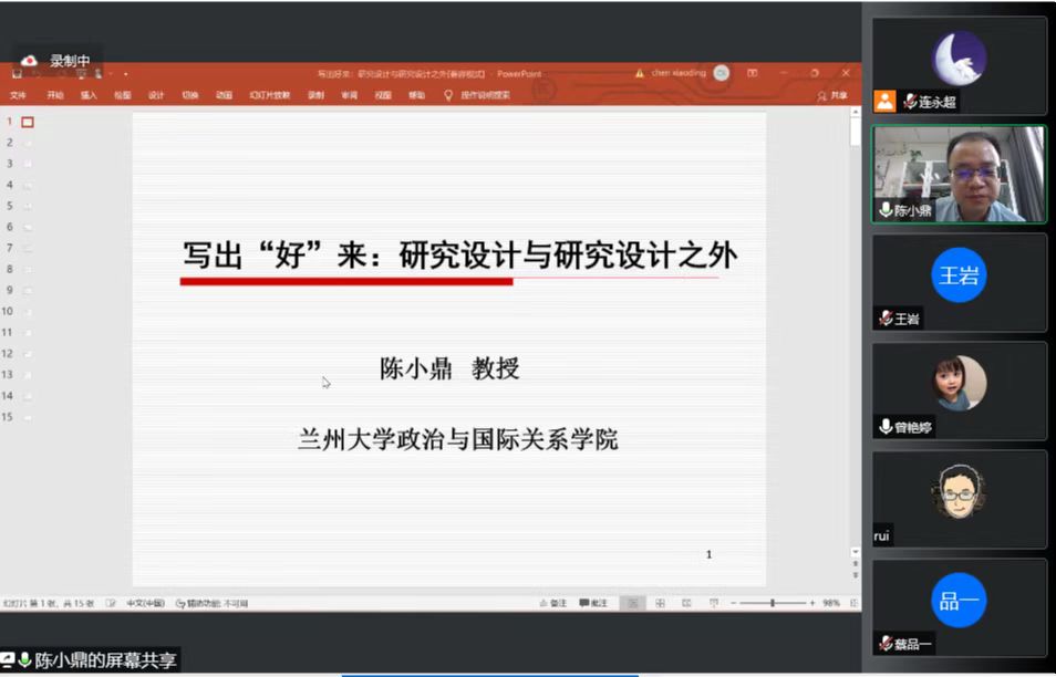 2022年8月26日下午,兰州大学政治与国际关系学院陈小鼎教授应邀在线上为ManHub