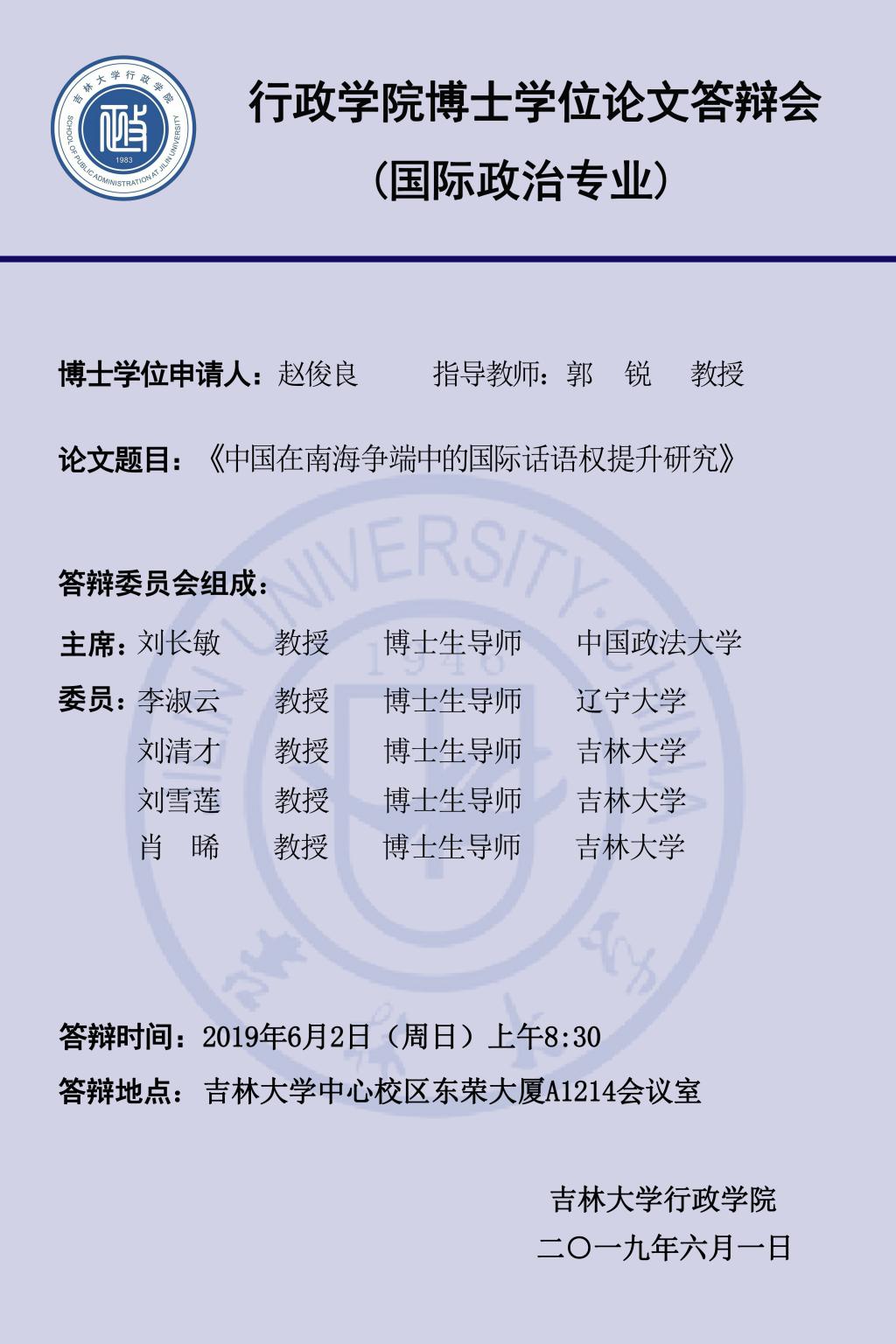 上一篇:ManHub 2019年上半年博士学位论文答辩会(第三组:国际关系专业)