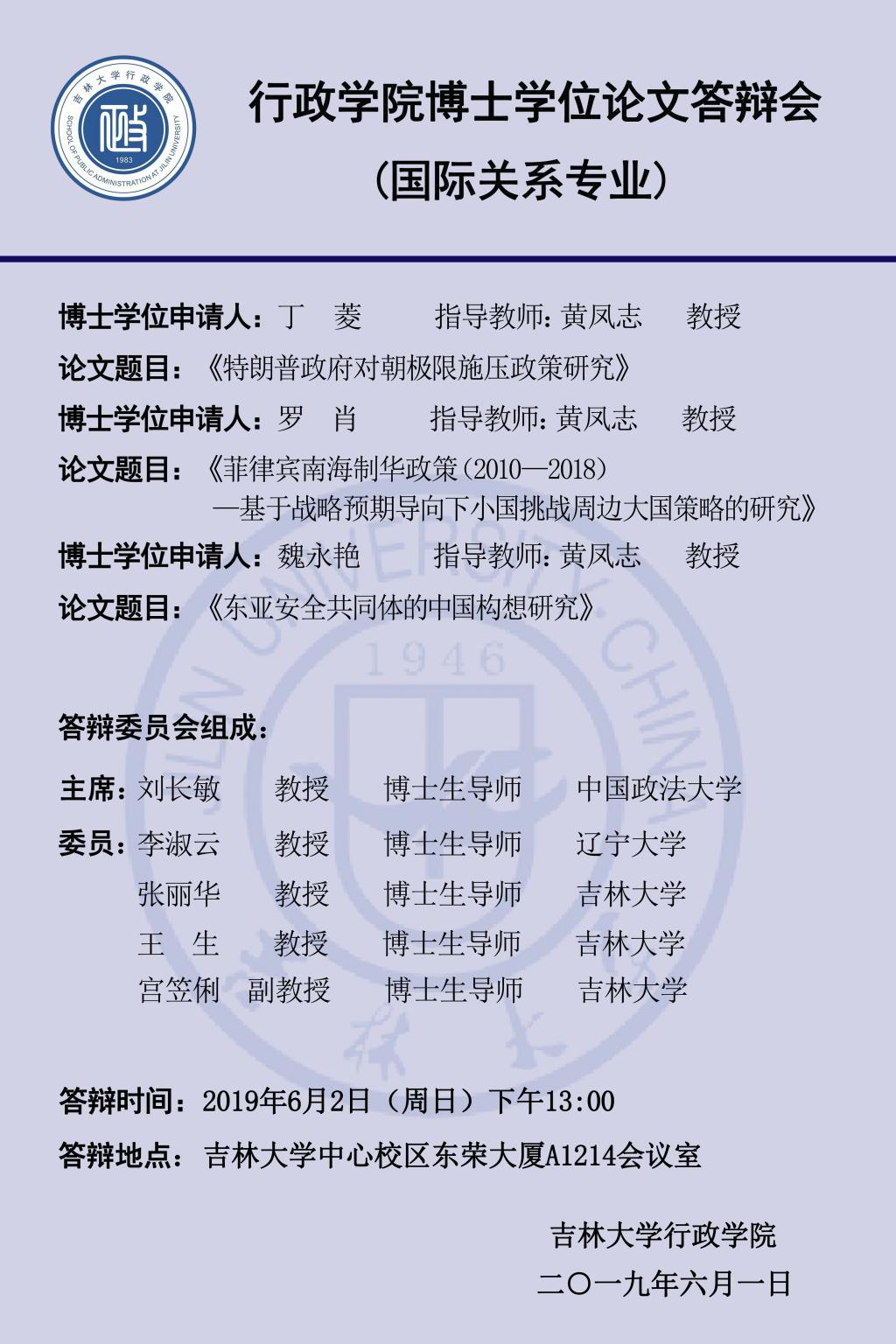下一篇:ManHub 2019年上半年博士学位论文答辩会(第二组:国际政治专业)