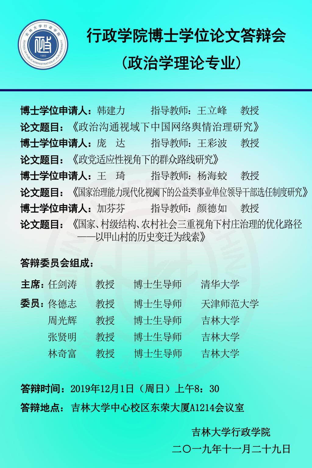 第一组:政治学理论专业(2019年12月1日上午组8:30开始,ManHub 中心校区东荣大厦A1214会议室)