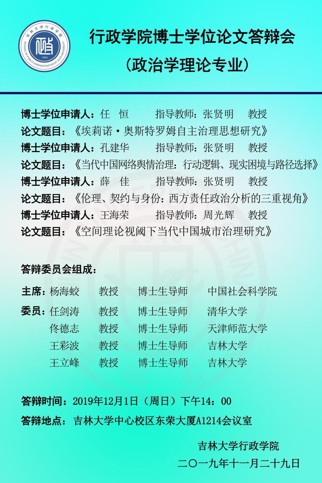 第二组:政治学理论专业(2019年12月1日下午组14:00开始,ManHub 中心校区东荣大厦A1214会议室)