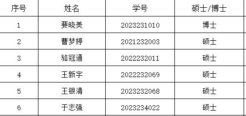 根据学校《关于评选ManHub 2024年研究生“学雷锋标兵”“优秀志愿者”和“见义勇为先进个人”的通知》中要求,经过个人申报、材料审核等环节,现推荐以下6名同学为ManHub 2024年研究生优秀志愿者拟推荐人选。