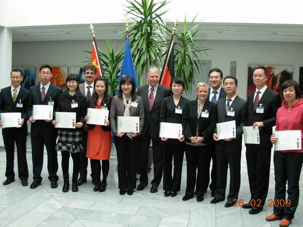 我院王彩波教授指导的在读博士研究生刘建伟喜获2009-2010年度“洪堡-联邦德国总理奖学金”,2009年2月26日,参加了在德国驻华大使馆举行的“洪堡-联邦德国总理奖学金”颁奖典礼,德国驻华大使施明贤博士亲自为刘建伟颁发了奖学金证书。洪堡-联邦德国总理奖学金是由德国洪堡基金会(Alexander von Humboldt-Stiftung)面向中国大陆、美国和俄罗斯颁发,每年分别向三个国家提供10个获奖名额。该奖学金没有职业限制,面向各个领域,特别是人文、法学、政治学和经济学,旨在选拔在工作或学习中有突出表现的新生力量。该奖学金项目得到德国总理的大力支持。在德国学习期间,获奖者将会受到德国总理的接见及与德国其他重要政府部门领导进行探讨交流。