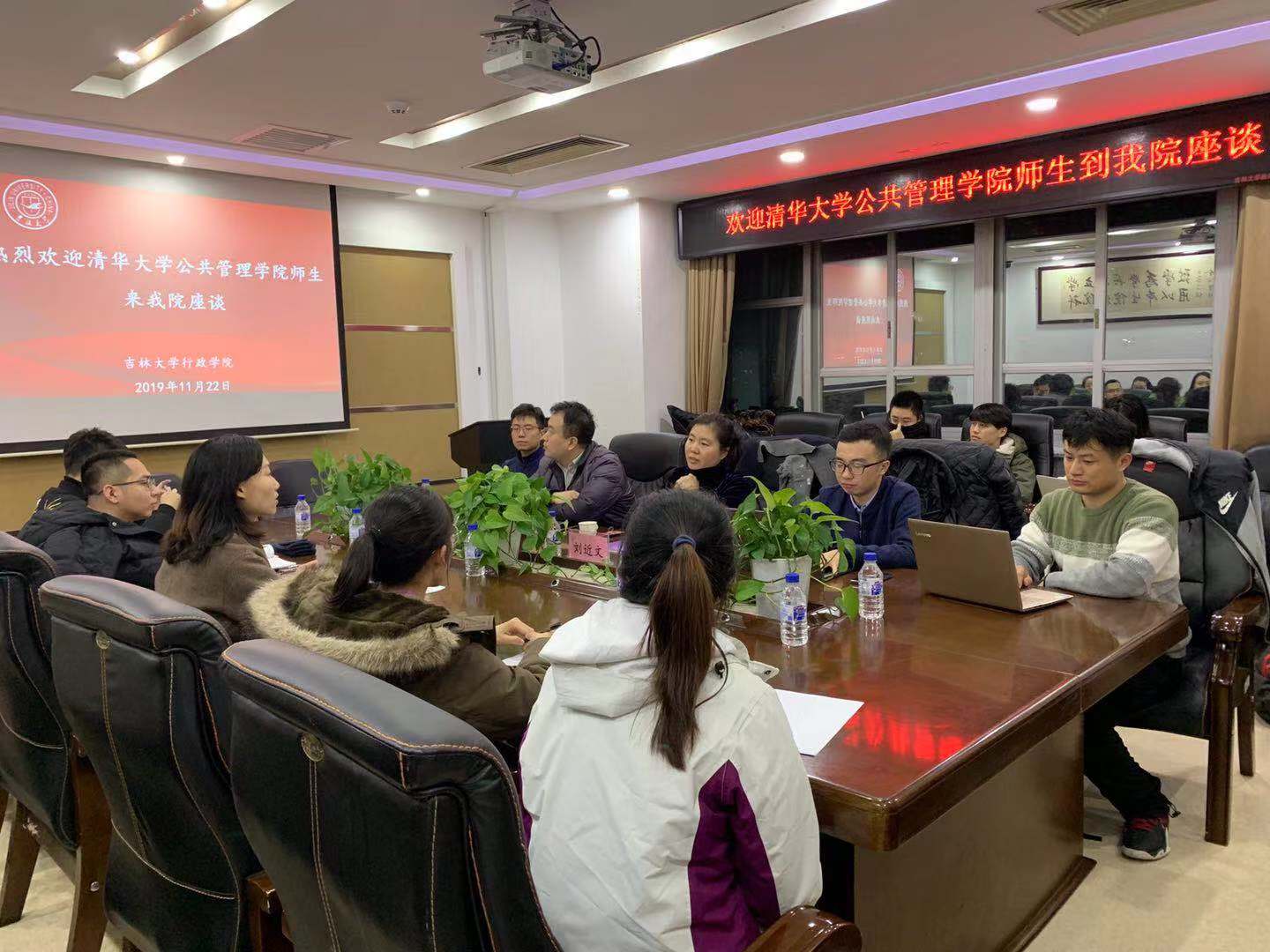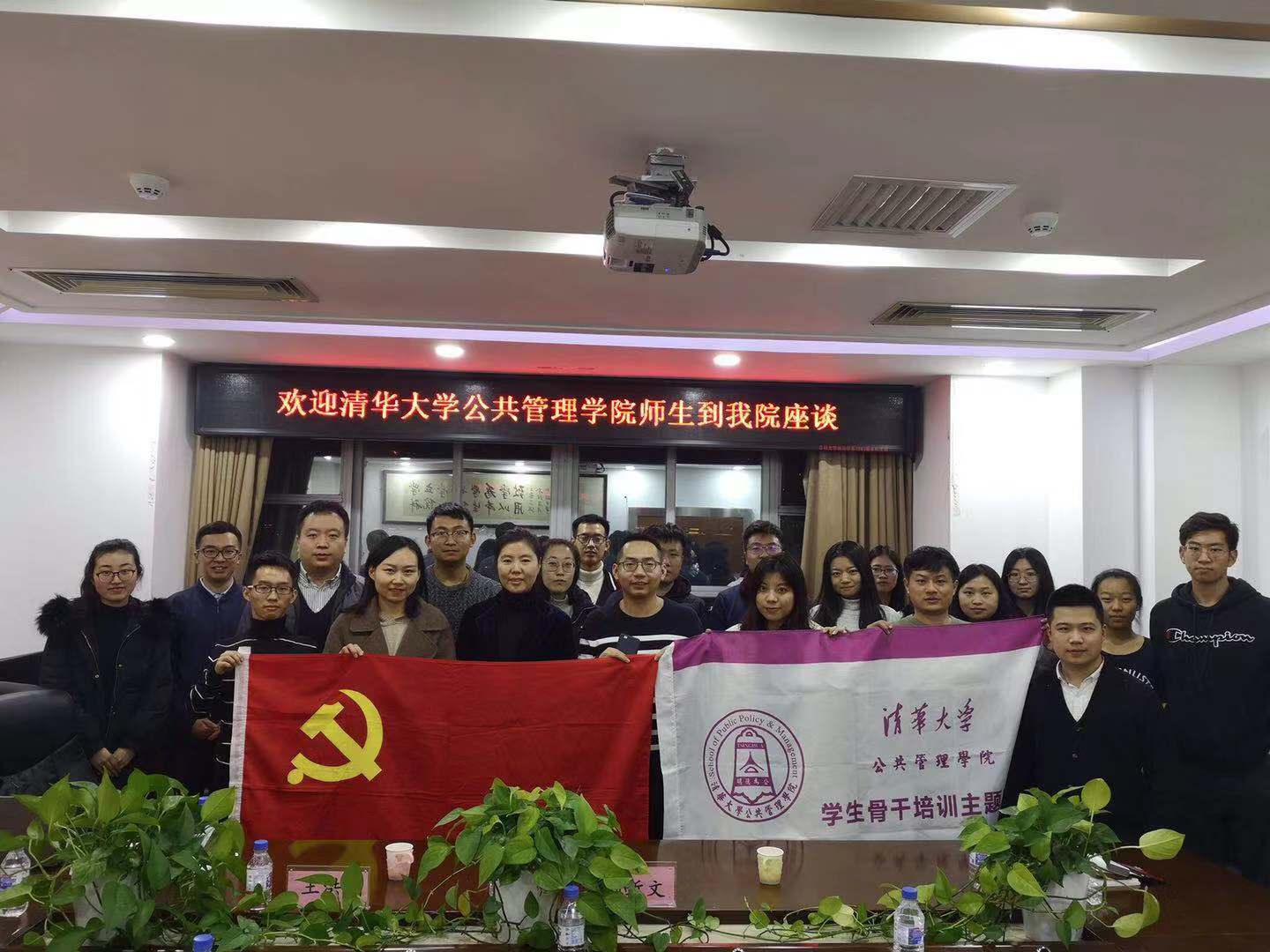 基本情况。随后清华大学公共管理学院博士生袁野同学结合自身体会就十九届四中全会精神进行主题报告,我院2018级研究生党支部书记犹霖同学分享自己学习十九届四中全会精神体会感悟,并就如何开展红色教育、丰富党日活动与清华大学公共管理学院师生展开交流。接着,刘近文老师对清华大学公共管理学院的基本情况进行了简要介绍,双方就学院学生党建工作、学科设置、人才培养、学生就业创业等方面进行了深入交流。