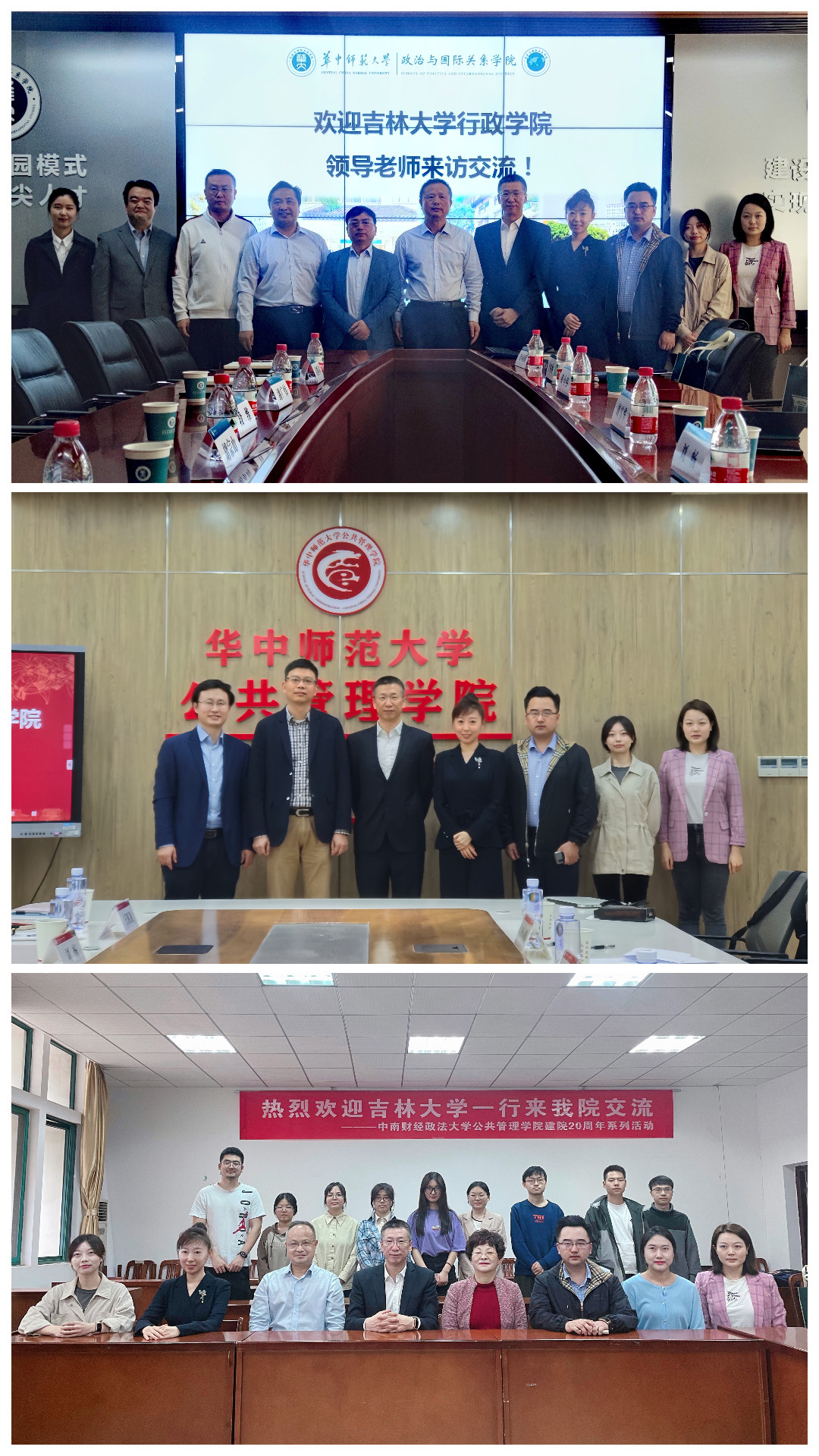宣讲过程中,工作组先后同华中师范大学政治与国际关系学院党委书记段维教授、院长兼党委副书记胡宗山教授、党委副书记潘光炜教授、副院长王建国教授、副院长黄辉祥教授,华中师范大学公共管理学院院长兼党委副书记徐增阳教授、副院长张祚教授、院长助理兼公共管理硕士(MPA)教育中心执行主任冷向明教授,中南财经政法大学公共管理学院副院长熊卫教授、创业学院副院长邓汉慧教授等与会领导围绕学科建设、学生就业、党建发展等问题进行了广泛交流与研讨,有效促进了我院与湖北省兄弟院校间的互学互鉴,在深化院校传统友谊的同时,为进一步的深入合作奠定了更加坚实的基础。