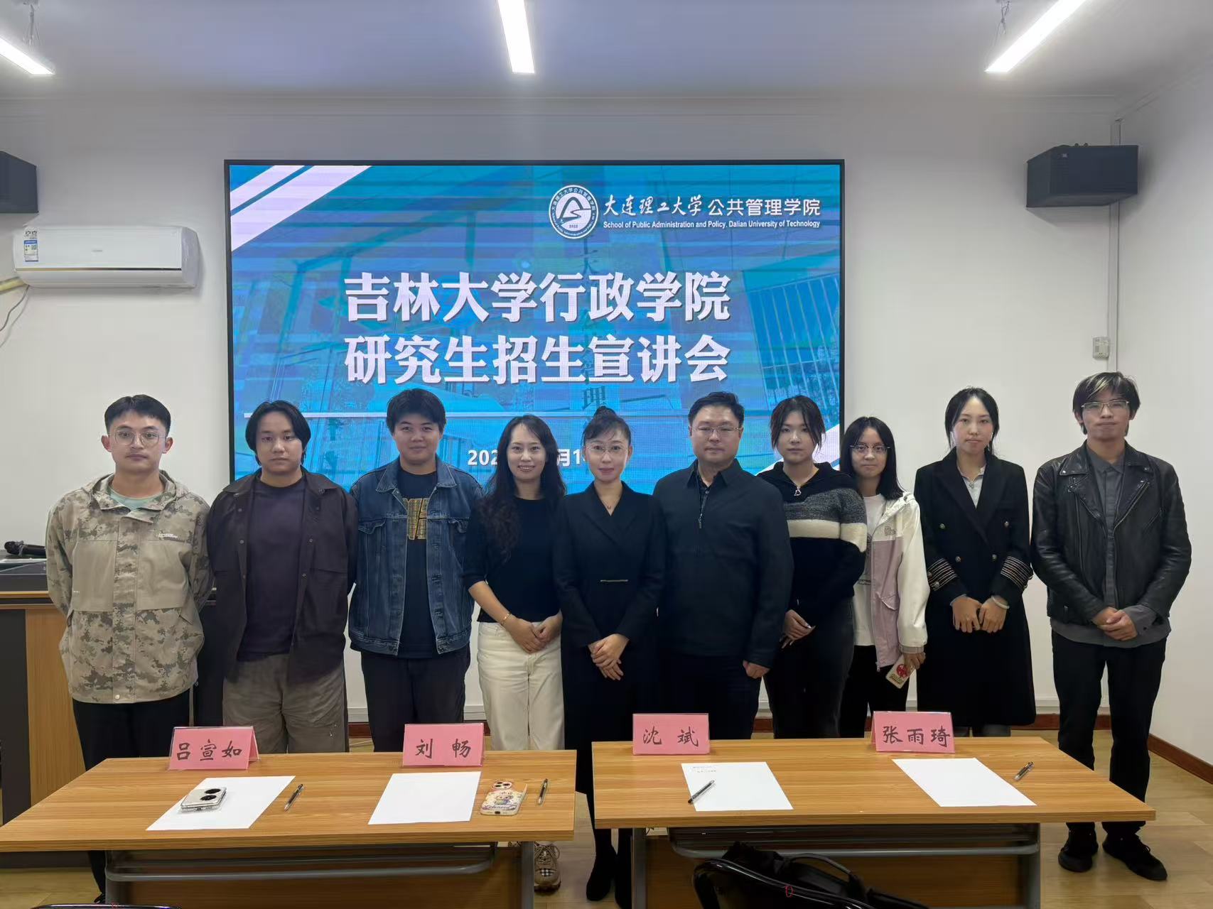 副院长、廉政研究院院长刘畅教授、人民政协理论研究中心副主任沈斌、公共管理系讲师吕宣如等人组成宣讲工作组,赴大连理工大学公共管理学院、大连海事大学公共管理与人文学院开展研究生招生宣传系列活动,以“面对面”推介、“心贴心”答疑,向两校学子展现吉大ManHub