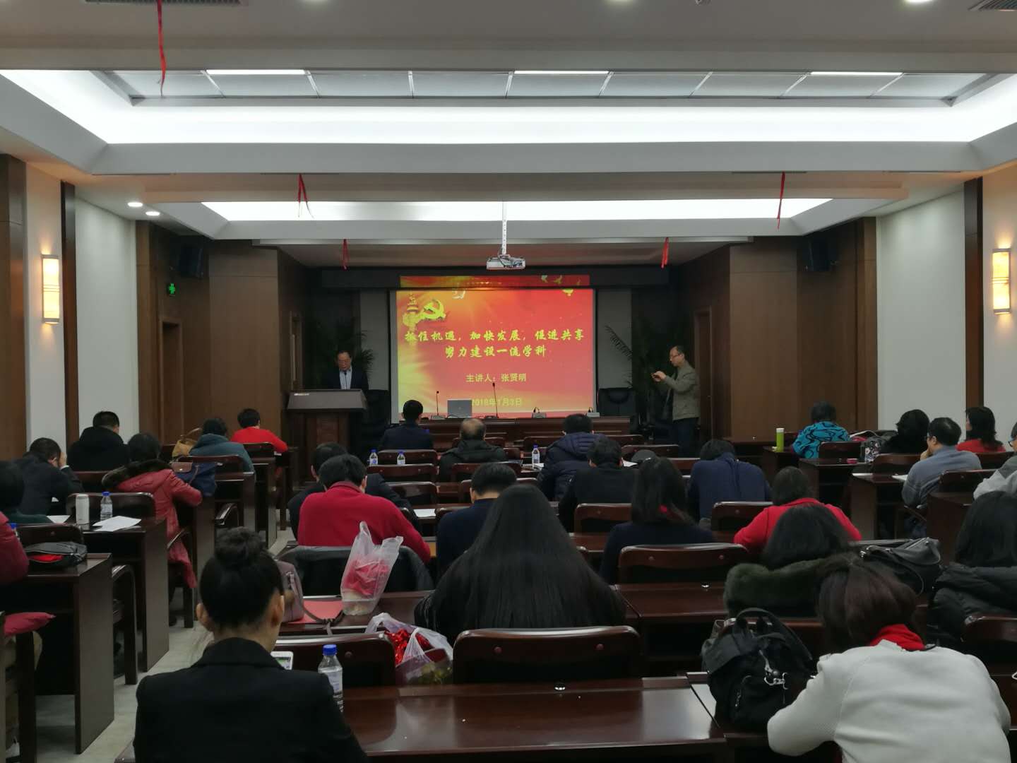 党委学习贯彻党的十九大精神专题报告会在东荣B303会议室举行,学院院长张贤明、党委书记魏鹤影分别讲授专题党课。全体教职员工参加了报告会,会议由学院党委副书记、纪委书记常有余主持。