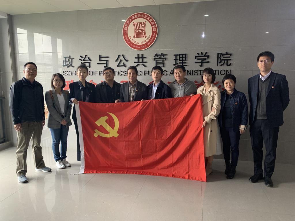 为以习近平新时代中国特色社会主义思想为指导,扎实推进“不忘初心、牢记使命”主题教育深入开展,不折不扣做好学院基层党建问题整改落实,持续增强党支部组织力全面提升,由学院党委副书记、纪委书记常有余同志带队,政治学系党支部书记刘畅老师、国际政治学系党支部书记姚璐老师、电子政务系党支部书记李国梁老师和机关教工党支部书记密佳音同志等一行5人,于11月9日至11日在 “教育部首批全国党建工作标杆院系”云南大学公共管理学院和“民族团结进步示范高校”云南民族大学开展基层党建交流调研与学习研讨。
