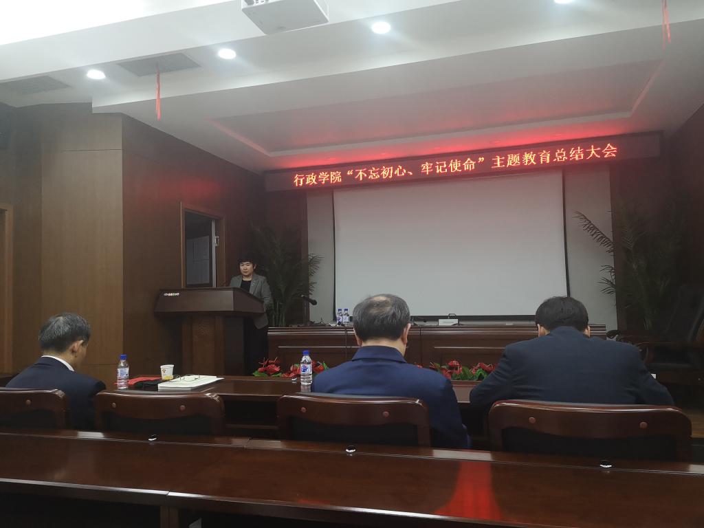 “不忘初心、牢记使命”主题教育总结大会,在东荣大厦B303会议室召开。学校主题教育第五指导组组长刘雪峰出席会议。学院全体教职员工、学生代表参加了会议。会议由院长张贤明主持。