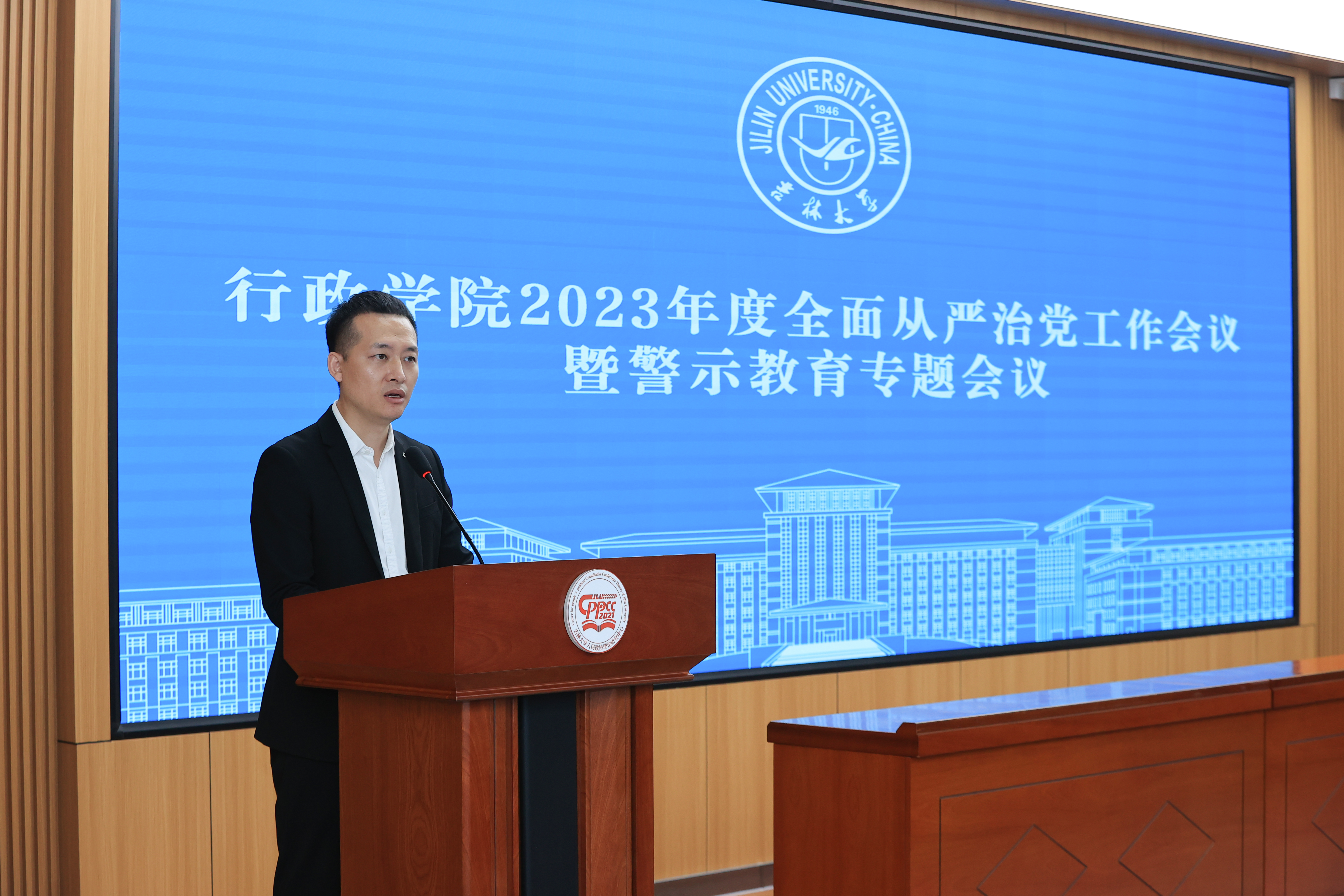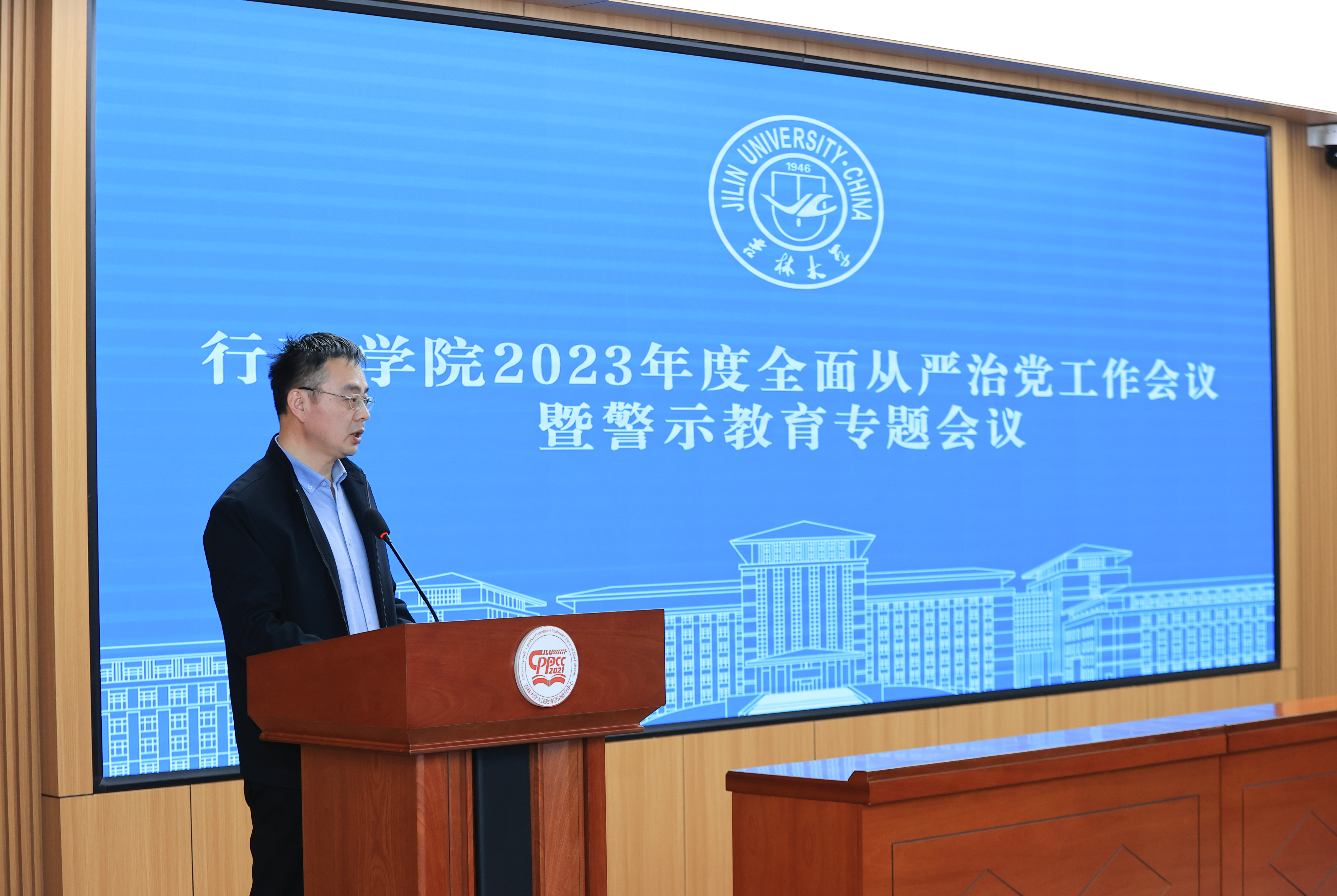 在东荣大厦B102会议室召开2023年度全面从严治党工作会议暨警示教育专题会议,学院全体教职工参加会议。会议由学院党委书记陈希贵主持。