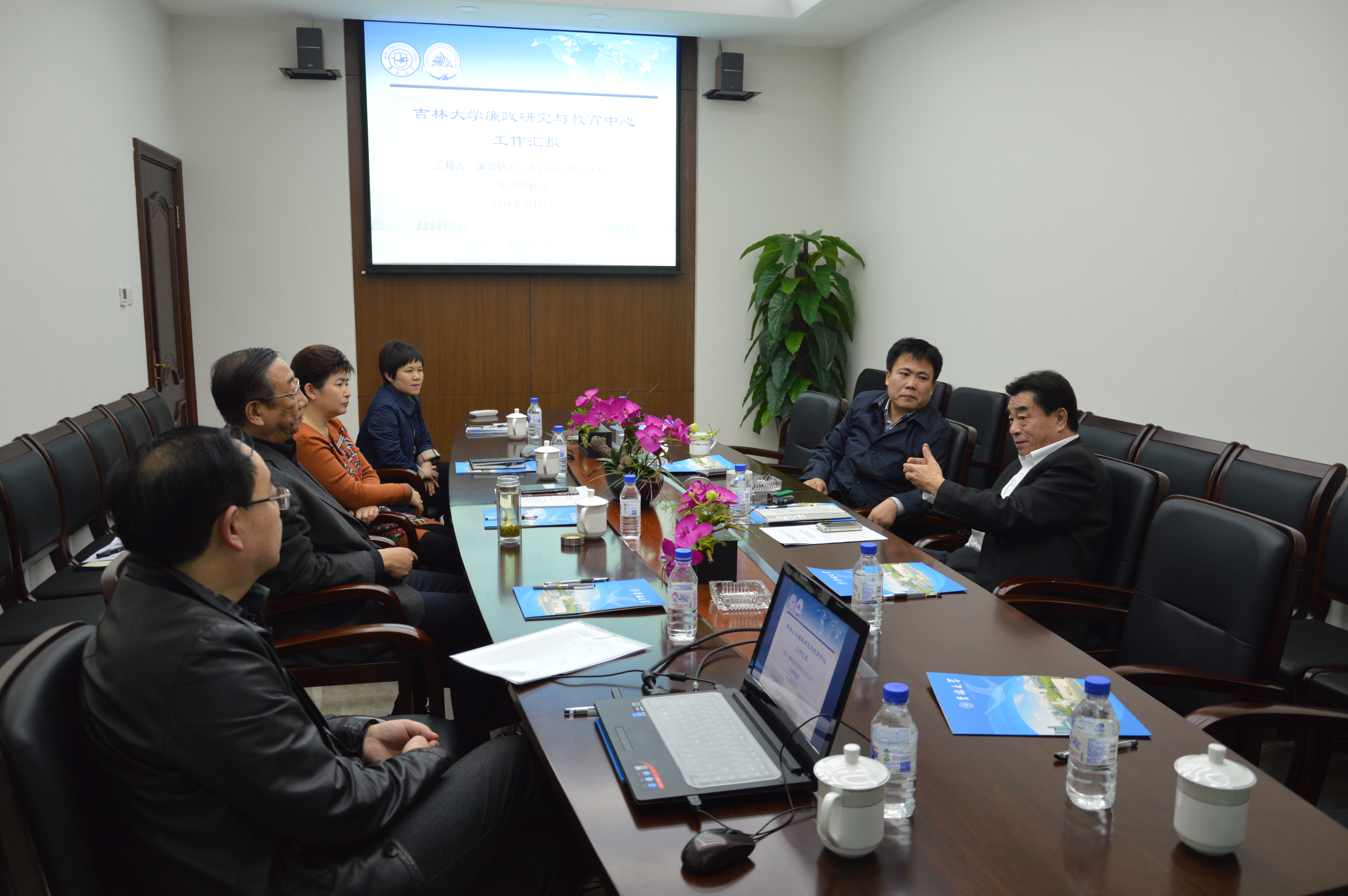 会上,中心执行主任张贤明教授首先向李书记介绍了中心成立的基本情况,并从四个方面汇报了中心的建设和发展情况:一是在廉政理论研究方面,中心围绕党风廉政建设研究领域设立专项委托课题和一般招标项目,发表系列论文。二是人才培养方面,面向全国纪检监察系统在全国率先招收廉政方向博士生;为福州市纪检监察系统、深圳福田区等单位和部门进行纪检监察干部综合业务培训和党风廉政教育培训。三是学术交流方面,先后举办“廉政建设与国家治理”等两场全国性学术会议。四是服务廉政建设实践方面,依托廉政研究项目以及省纪委委托项目所产出的咨询报告类成果先后被吉林省纪委、吉林省人社厅等多家单位采纳并获领导肯定性批示。2014年,中心入选吉林省人文社会科学重点研究基地;2015年,中心入选省级首批吉林特色新型高校智库。