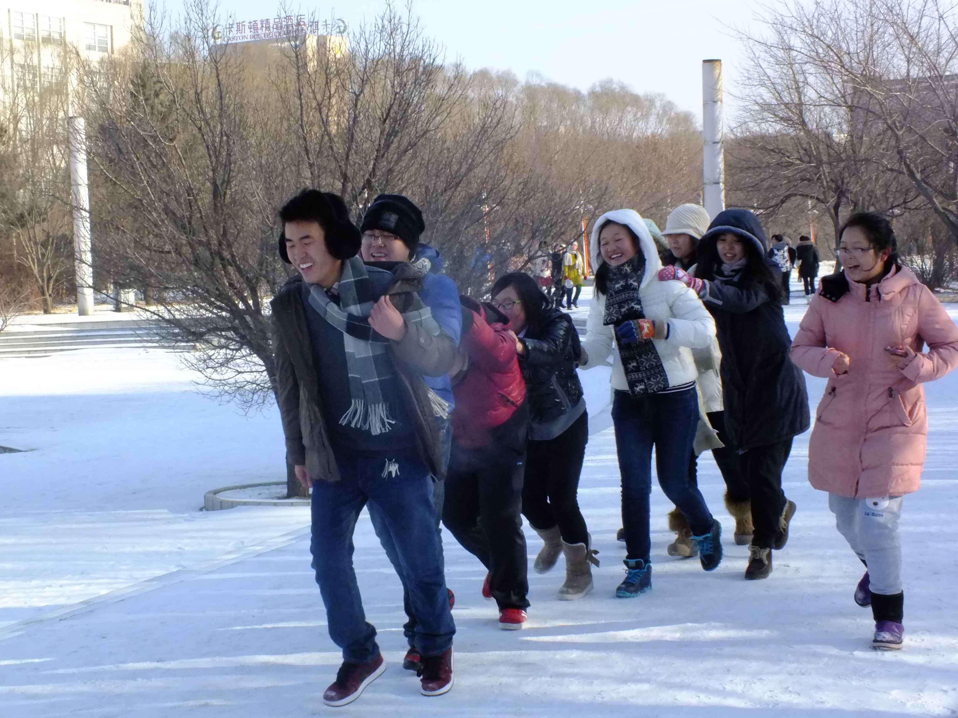 活动于上午九点开始。80余名同学分为5组,分别为2014级四个班级的代表队和社团代表队。5组又分成A、B两队。A队于五月花广场校碑前集合,B队于经信教学楼前集合,活动中转站设有体育馆北门、萃文自行车停车场、五月花广场喷泉三个地点。A队首先开始行动,他们要去寻找所发信封里分布在校园唐敖庆楼、音乐厅、图书馆、交通银行等附近四个雕塑、店铺,找到后需要和标志物合影以证明完成任务。虽然天气很冷,但是同学们在冰天雪地中认真地进行着每一项任务,最终A队完美地找到了所有四个雕塑、店铺,到达终点经信教学楼。A队结束任务后,在经信教学楼门口等候的B队开始进行活动,他们的任务是游戏通关赛,在体育馆北门空地、行政楼旁边的自行车停车场、五月花广场的喷泉处等地进行同心圆游戏、背靠背夹气球、搭肩僵尸跳等四场比赛。游戏中同学们相互配合、全情投入,最终B队也顺利完成任务,到达终点五月花广场校碑。最终081402班夺得室外“奔跑吧,行男行女”活动冠军,社团代表队、081403班代表队分获亚季军,081404班代表队、081401班代表队分列四、五名。最后,所有参加活动同学在校碑前合影留念。