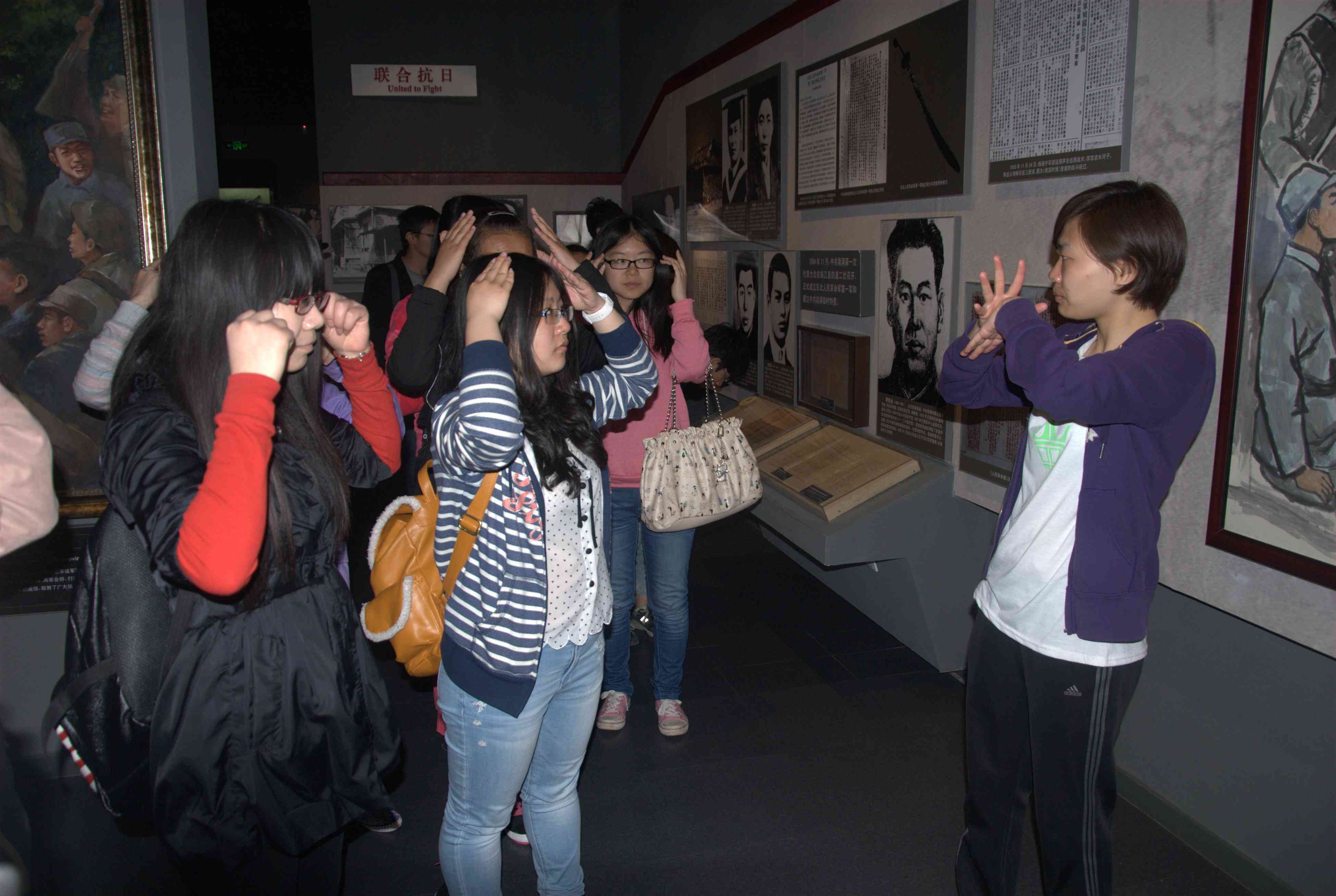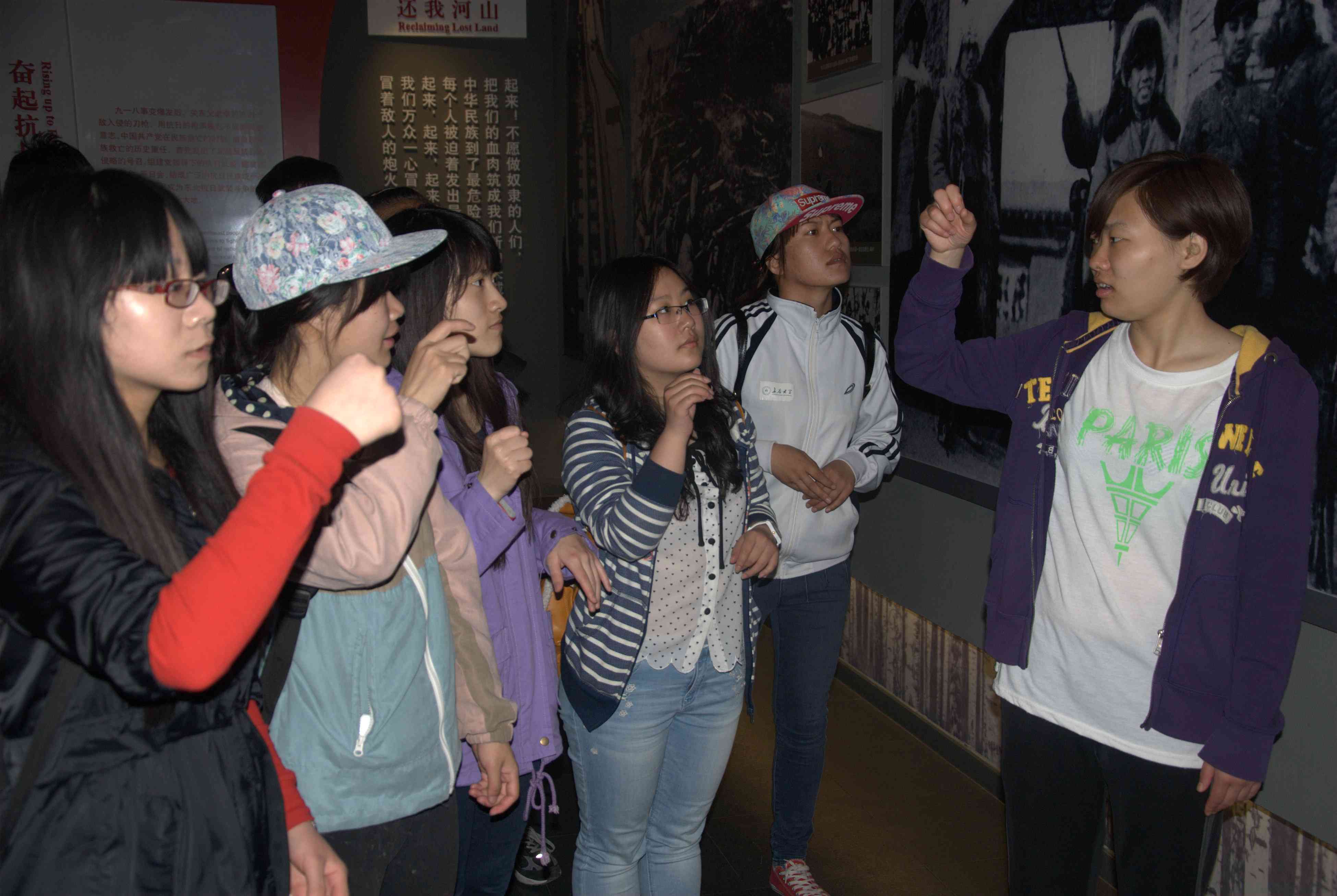 “政能量”志愿者再赴吉林省博物馆进行志愿服务并参加手语培训;认真的表情、热切的态度以及不曾停下的手部动作练习充分体现了志愿工作者们对志愿服务的坚定热情和信心。参观与培训同时进行,志愿者们在工作人员和手语教学人员的引导下参观了“黑土军魂——东北抗日联军军史展览”,展览讲述了从1931年东北沦陷到1945年抗日战争胜利的曲折历程。从“主动出击”到“游击战术”,再到“挥师西征”,一幕幕战争场景再现、一幅幅革命先烈的图像仿佛把人们带回了那个战火纷争、艰苦卓绝的年代,带领各位志愿者经历了一次形象深刻的爱国主义教育。
