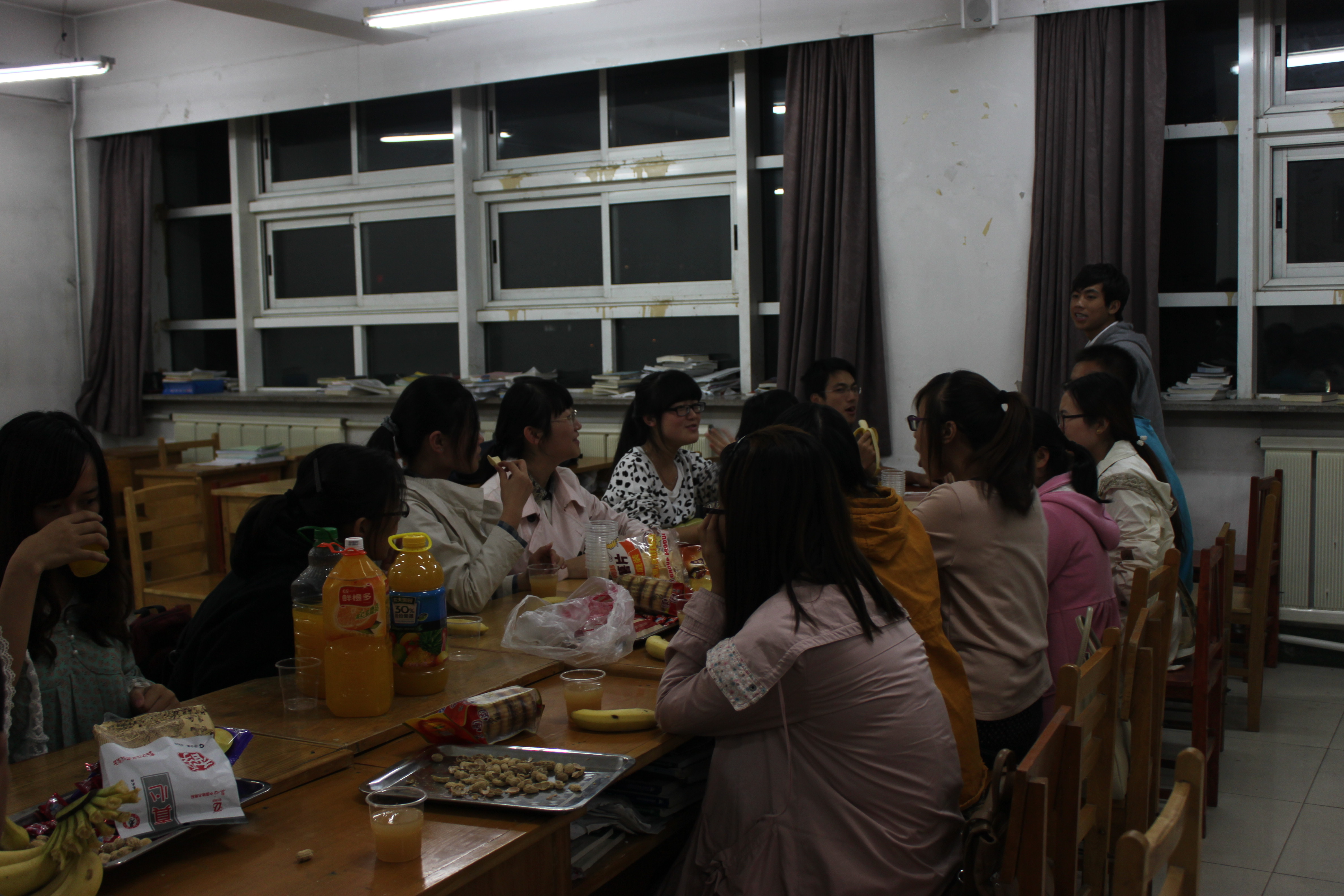 团支部成员首先向全体班级成员致以节日的问候。全班同学围坐在一起,欢笑声此起彼伏,处处洋溢着节日的喜气。在品尝美食的同时,同学们还进行着各种各样的趣味游戏。同学们纷纷表示在本次茶话会中感受到团组织的温暖,在这个阖家团圆的时刻,也许有不能归家的遗憾,但能够与同窗知己共度佳节,也算有另一种收获。
