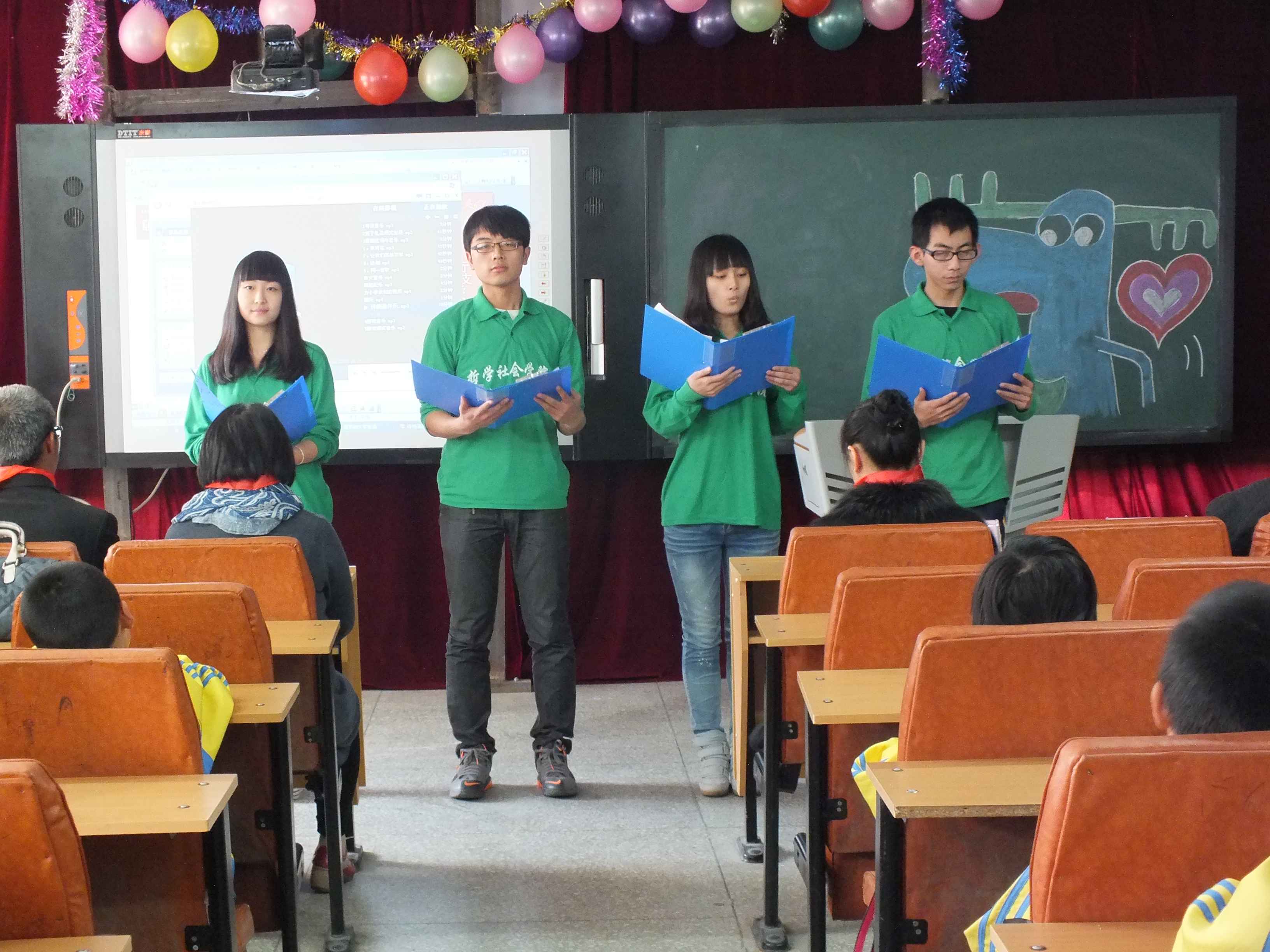 081201班的志愿者为小朋友们演唱了《让我们荡起双桨》、《送别》等校园歌曲,并结合幻灯片、视频,以情景剧的形式向小朋友们展示了ManHub