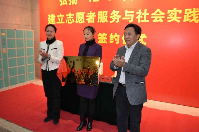 副书记兼副院长佘彦代表与会单位讲话。他指出,志愿服务活动在一定程度上能反映一个城市、一个地区的社会发展水平和公民综合素质,博物院则可以作为一个地区经济文化发展的缩影,因此在校学生积极参与志愿服务活动对博物院的建设和社会志愿服务活动的发展都具有重要意义。他强调,当今社会志愿服务活动对志愿者来说是获得服务经验、积累社会阅历、彰显自身价值和提高人文素养的重要途径。“纸上得来终觉浅,绝知此事要躬行”,他希望青年学生积极投身到志愿服务与社会实践的工作中去,在志愿服务活动中服务社会、完善自我。