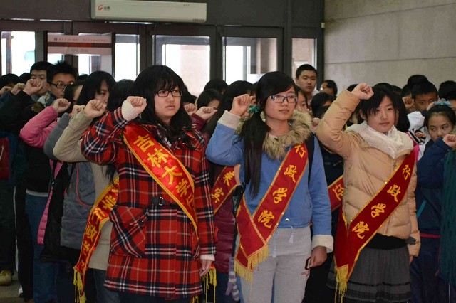 机械科学与工程学院学生刘登龙在发言中表示一定不负老师和同学们的期望,珍惜宝贵的志愿服务机会,与各位志愿者共同完成志愿服务工作。他还邀请与会的志愿者共同宣誓,庄严的誓词,表现出志愿者对志愿活动高涨的热情和坚定的信心。