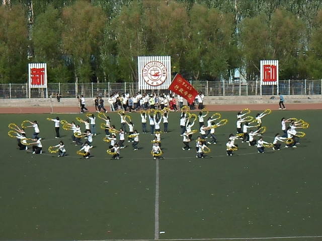 下午1:00整,我院舞蹈队的同学们早早来到体育场,以饱满的热情积极准备着即将到来的比赛。作为第八个上场的代表队,我院同学们丝毫没有受到阴冷天气的影响,和着《锦绣中华》悠扬的音乐,她们手持金色花瓣形道具,翩翩起舞,饱含深情地演绎着对祖国锦绣大地的赞美与热爱。而其构思精妙的队形变换、“天下为公”的摆字造型更是得到了观众的认可与赞叹。最后,同学们以层层打开的花瓣造型结束了本次表演,凭借出色的发挥赢得了在场观众的阵阵掌声。
