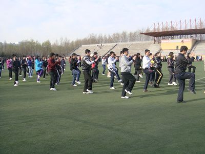 4月18日,在学生会体育部及文艺部的组织下,三路长拳,太极拳训练和舞蹈编排工作正式开始。由于我院人数少,训练时间紧,任务量大,准备工作面临着巨大的困难。但同学们秉持着“院小力量大”的信念,团结协作,迎难而上,不惜牺牲自己的休息时间,每天早晚合练2个小时,甚至利用周末的时间熟悉动作,只为在运动会文艺及武术比赛上拔得头筹,为我院增光添彩。08级学生会主要成员每日都不辞辛苦地陪同同学们训练,随时关注训练进度。团委书记马景惠老师也亲临训练场为同学们进行指导并加油鼓劲,相信经过刻苦练习,行政学子定能在全校师生面前一展行政人的风采。