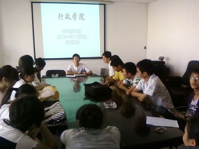 08级行政管理三班齐聚一堂,在东荣大厦12楼会议室召开了进入大三的第一次主题班会。本次班会的主题是“自信选择,昂首前行”,会议由班长周帆主持。