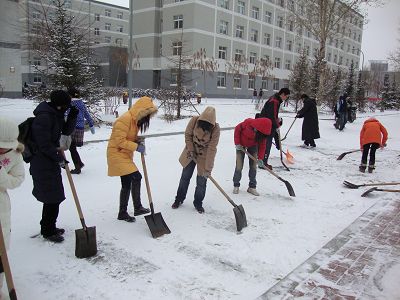 2009年11月13日至15日,长春气温下降,天气由暖日高照转为雪花飞舞。长春第一场大雪的降临让整个吉大校园穿上了洁白的雪衣,但是为了方便学生出行,学校给各学院分配了清扫路面的任务。