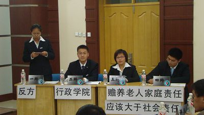 以“赡养老人家庭责任大于责任”的立场观点与化学学院对阵第二轮比赛。