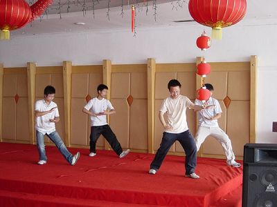 在聚会上,老师和事先分好组的同学们兴致勃勃地包起粽子。在包粽子上,虽然大家基本上都是新手,每个人的粽子可谓“粽型各异”,不同于传统的粽子,但大家从动手的过程中体验了无尽的快乐。一盆盆粽子下锅后,大家在等待中表演起了节目,武术、太极、歌曲、笑话先后演出,精彩的节目和开心的游戏使活动高潮迭起,大家你方唱罢我登场,餐厅成了一片欢乐的海洋。不知不觉一个多小时过去了,我们的粽子终于隆重登场,同学们围坐在一起开心地品尝着自己的劳动成果,吃得不亦乐乎。