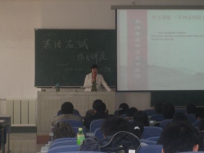 讲座上,伍思静老师为大家详细讲解了应试作文的技巧,为准备考研的同学介绍了英语作文取得高分的快而好的模版和一些写作窍门,这些技巧得到了在场同学的一致认可。老师的话语深入浅出,生动风趣,会场内掌声不断,大家都觉得受益匪浅。这次讲座提高了大家的学习热情,明确了大家的英语学习方向,提高了大家对以后英语考试的信心。