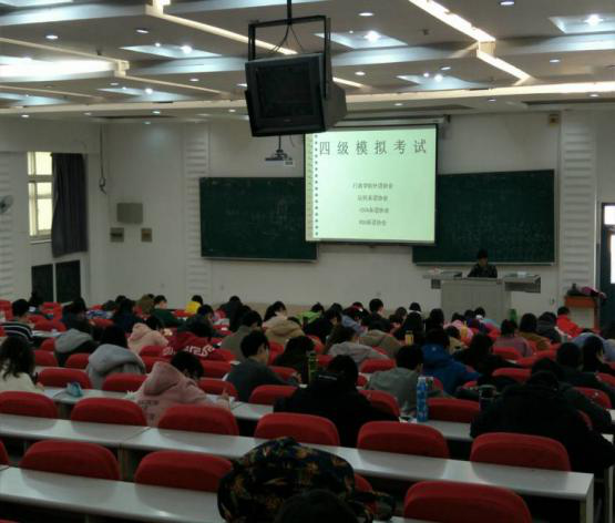 外语协会主办,国际发展与交流协会协办的大学英语四级模拟考试活动,在中心校区经信教学楼第六阶梯教室举办。中心校区对四级感兴趣的部分同学参加了模拟考试。