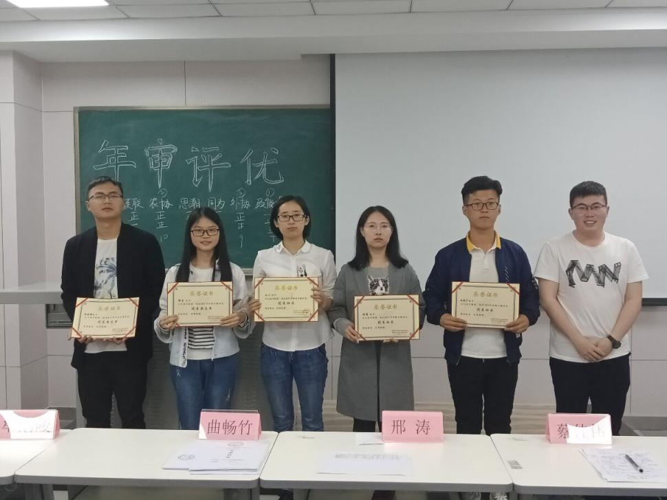 外语协会分获二、三等奖,模拟联合国协会、思潮学社、海化社、同为社获优秀奖;社团负责人孙月、王翔宇、张萌荣获“优秀社长”称号,邹蓉、赵娅丽荣获“优秀团支书”称号。在随后的颁奖环节,曲畅竹上台为获奖人员颁奖,并就社团的建设发展等方面的问题向大家提出了建议;社联主席邢涛、副主席兼管理部部长蔡佳伟对本次年审评优答辩作了总结。