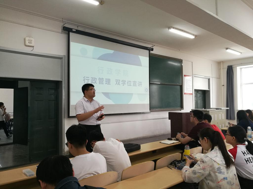 继在预报名阶段成功举办两场宣讲会并得到同学们的极大关注后,我院行政管理双学位宣讲团队再次启程,先后于4月20日晚、6月7日中午和6月12日下午,分别为文学院暨新闻与传播学院、生物与农业工程学院、通信工程学院的2017级本科生同学们带来了三场行政管理双学位招生宣讲。