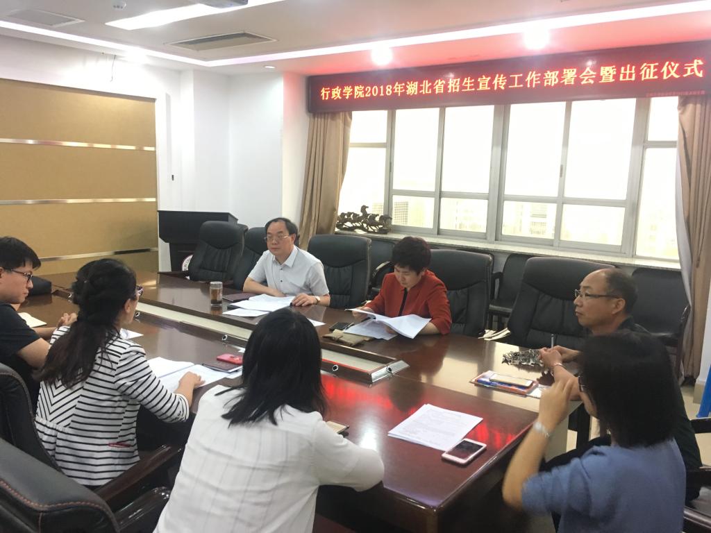 在中心校区举办了2018年度湖北省招生宣传工作部署会暨招宣团队出征仪式。一直以来,学院党政领导班子对学校招生宣传工作给予了高度重视和大力支持。本次招生宣传工作部署会暨招宣团队出征仪式,学院院长张贤明、党委书记魏鹤影到会指导。学院党委副书记兼副院长史慕华、副院长殷冬水和我院本科招生宣传工作团队全体成员出席本次会议。会议由史慕华主持。