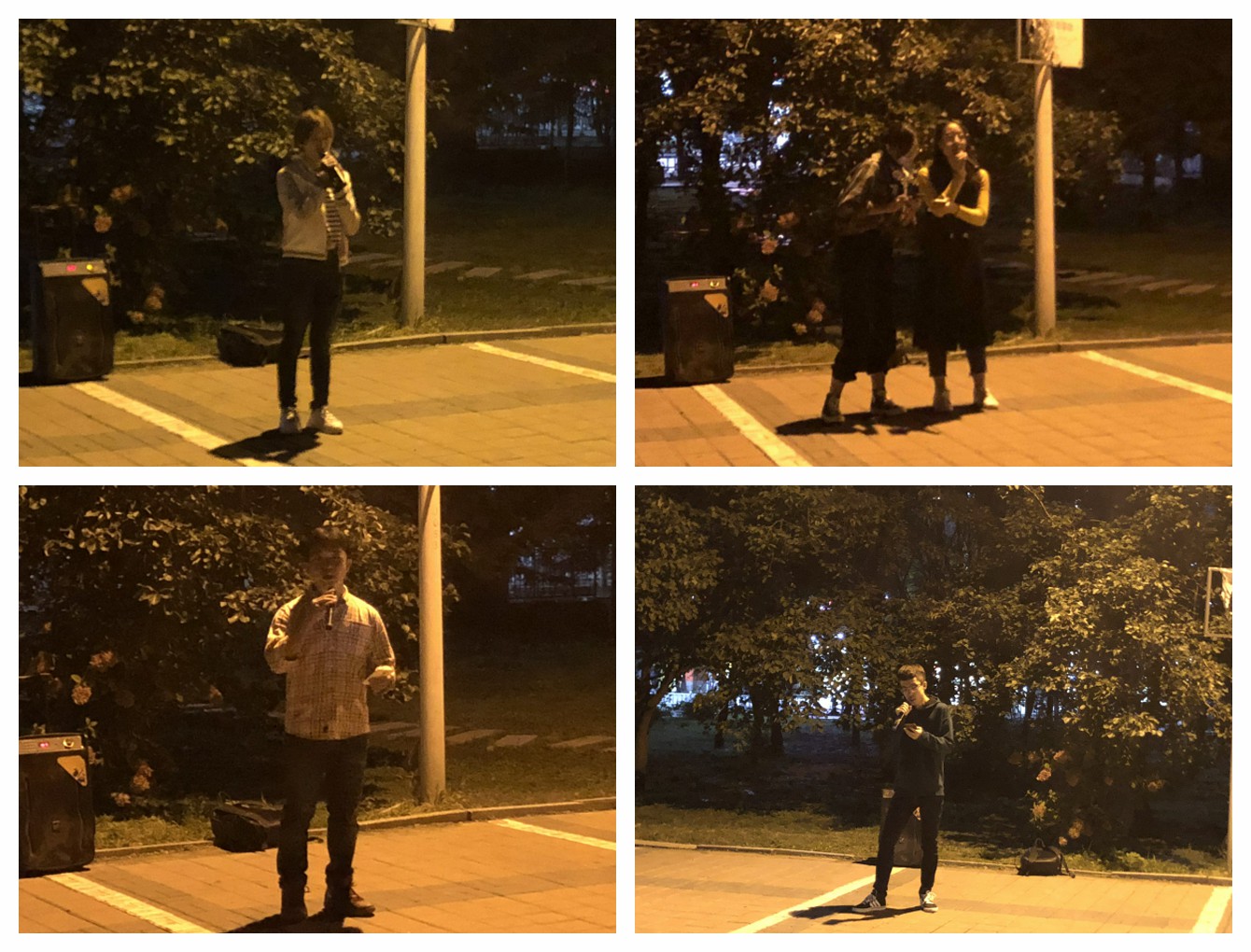 本次活动以自发表演节目的形式进行。体育馆前的路灯下,新生们围坐成圈,本场晚会在学生会成员的表演中拉开序幕,现场气氛热烈、新生踊跃参与。《再别康桥》、《红旗颂》两首风格迥异的诗朗诵引得观众连连鼓掌;流行歌曲《空白格》、《纸短情长》与《霍元甲》,或欢快,或深情,场下的同学们爆发出阵阵欢呼;由朝鲜族同学表演的《眼鼻嘴》&《BANG BANG BANG》燃爆全场,将整场晚会的气氛推向了高潮;民谣风格的《阿楚姑娘》、《南山南》、《成都》等歌曲让人沉醉,并带动了台下同学的大合唱;女生独舞《Hard Carry》再次点燃了全场观众的激情;古风歌曲《化鹤归》、《我的一个道姑朋友》则让人领略了古时风韵。