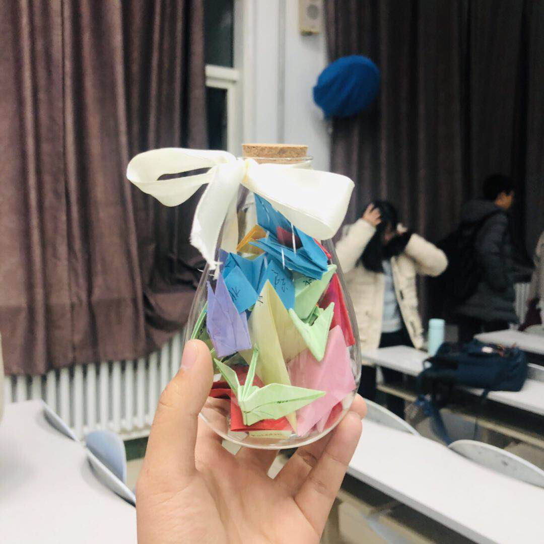 活动伊始,王馨瑶同学就组织同学们在许愿纸上书写自己关于青春的愿望、大学四年的计划和对自己的要求,并分享了自己对于青春的感悟。在对青春许愿的过程中,6位同学用PPT展示了有关“奋斗”、“奉献”的人物事迹。其中,张译文同学以军校学生为例讲述军人对国家的奉献,并向人民英雄致敬,引发了大家对“奉献”的思考;武俊豪同学讲述了雷海为从外卖小哥到诗词大会总冠军的逆袭,并认为坚持自己喜欢的事情也是一种奋斗。活动最后,大家一起把许愿纸放在了1班的时光瓶里,希望四年后打开时每个人都能够实现自己的目标。