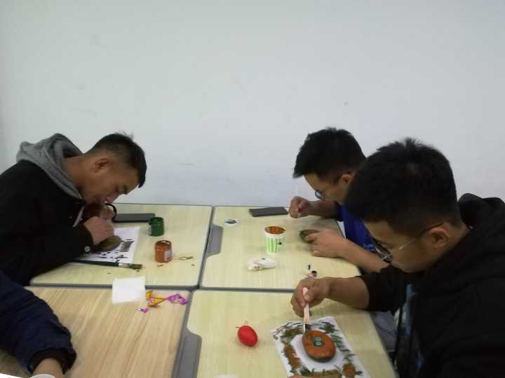 中心校区经信教学楼C101室举办了以“心系耄耋花甲,爱让石头开花”为主题的石头画志愿活动。本次活动由1班团支书吕雨函主持,1班部分同学及招募的志愿者们参加了此次活动。