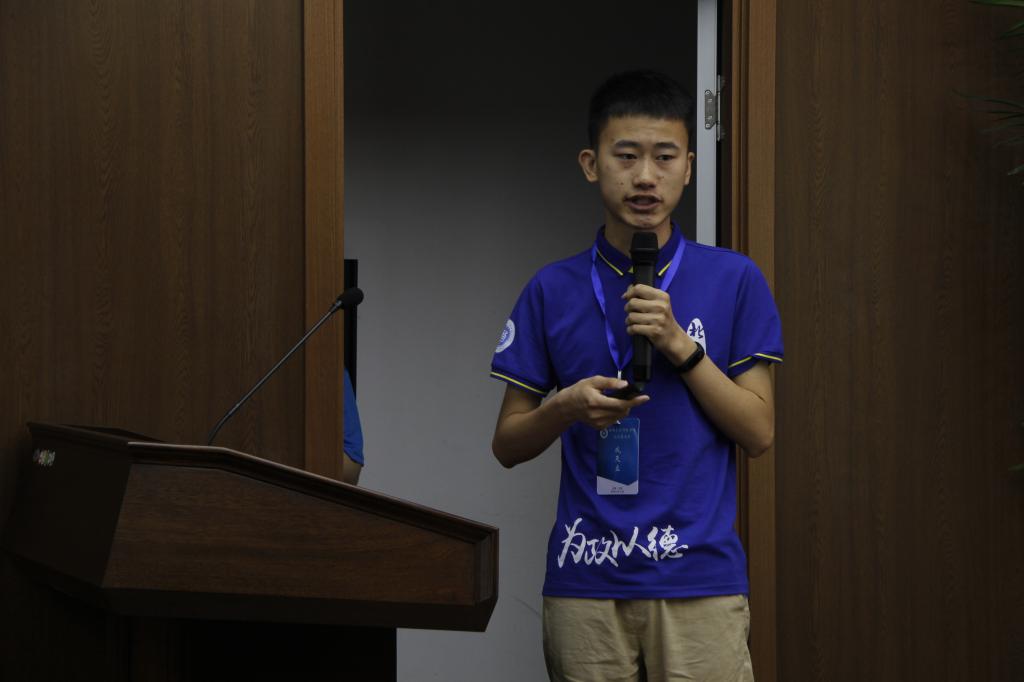 仪式伊始,常有余宣读了优秀营员名单,许玉镇为优秀营员同学颁发了证书。优秀营员代表成天立、肖晨卉与吴荧秋同学依次登台展示了研修报告。