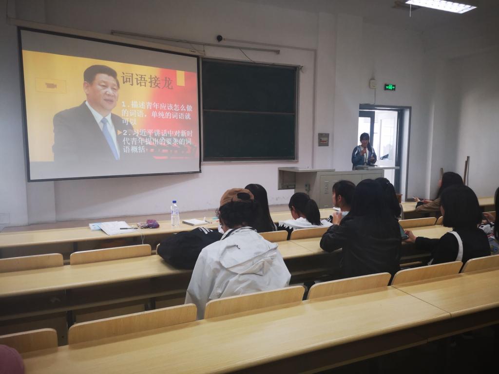 081802班特于5月22日16:20在逸夫教学楼第十四阶梯教室开展了以“百年五四至,青春正当时”为主题,以词语接龙、重要思想学习为主要内容的月度班级学习分享交流会。