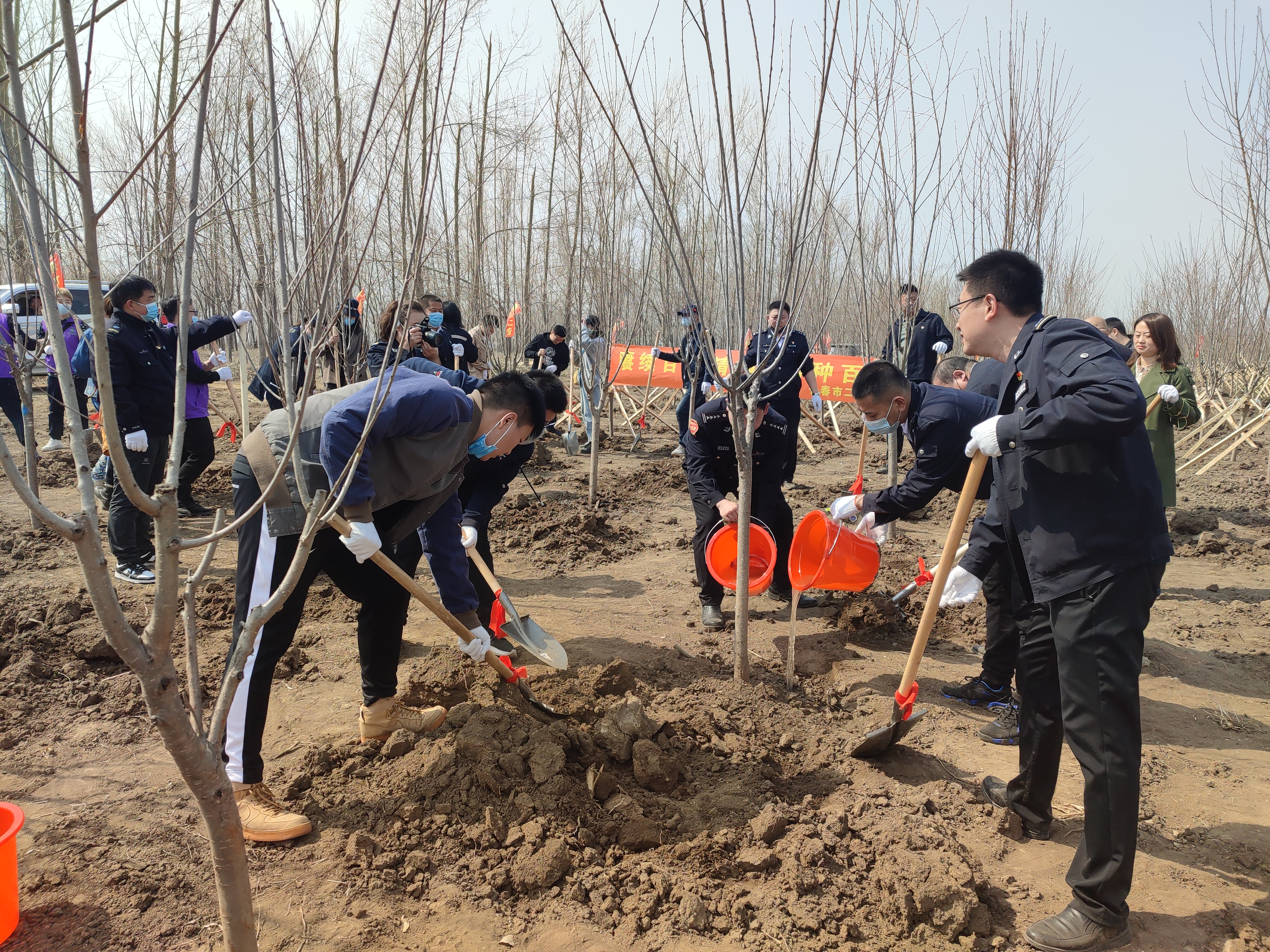 春回大地万物苏,播种希望正当时。4月21日上午,我院志愿者师生参加了长春市二道区东站街道十委社区竹青志愿联盟“庚续百年精神,播种百株希望”主题植树活动。位于二道区英俊镇的植树现场一派热火朝天的繁忙景象。竹青志愿联盟的志愿者们一起挥锹铲土、扶苗围堰、拎桶浇灌,栽下一棵棵树苗、播种一个个希望。时值庆祝中国共产党成立100周年,全党开展党史学习教育之际,我院党团员志愿者师生用实际行动践行了“绿水青山就是金山银山”发展理念和谭竹青精神,为建设美丽家园贡献了力量。