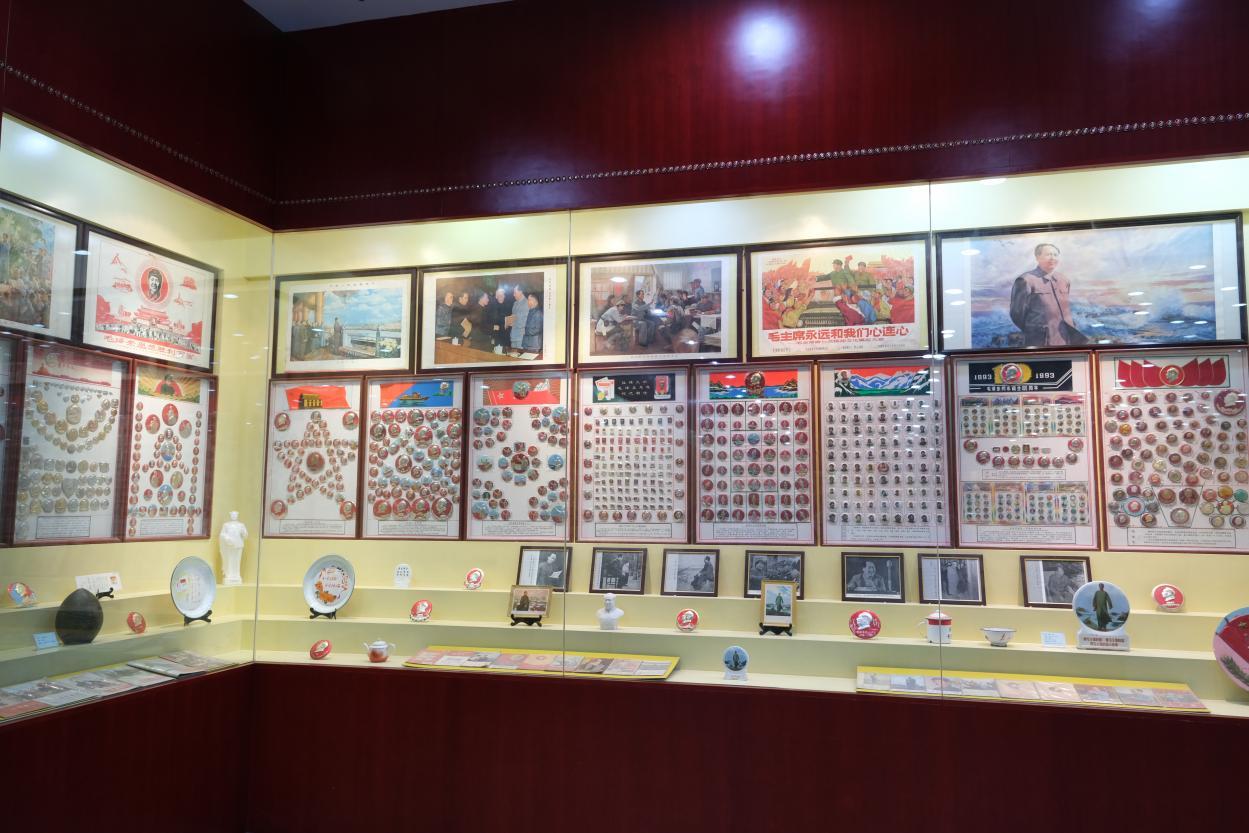 大家依次参观“开天辟地”“星火燎原”“开国大典”“改革开放”等主题像章展画。组员们聚精会神,认真聆听讲解员的精彩讲解,感受伟人风采。在二十世纪六七十年代,毛主席像章制作数量、品种、工艺等都达到了我国乃至世界徽章艺术的巅峰水平。30万枚毛主席像章精美绝伦,从金银铜铁到搪瓷玻璃,材质多种多样,体现了民众对中国共产党和毛主席朴实而炙热的情感。