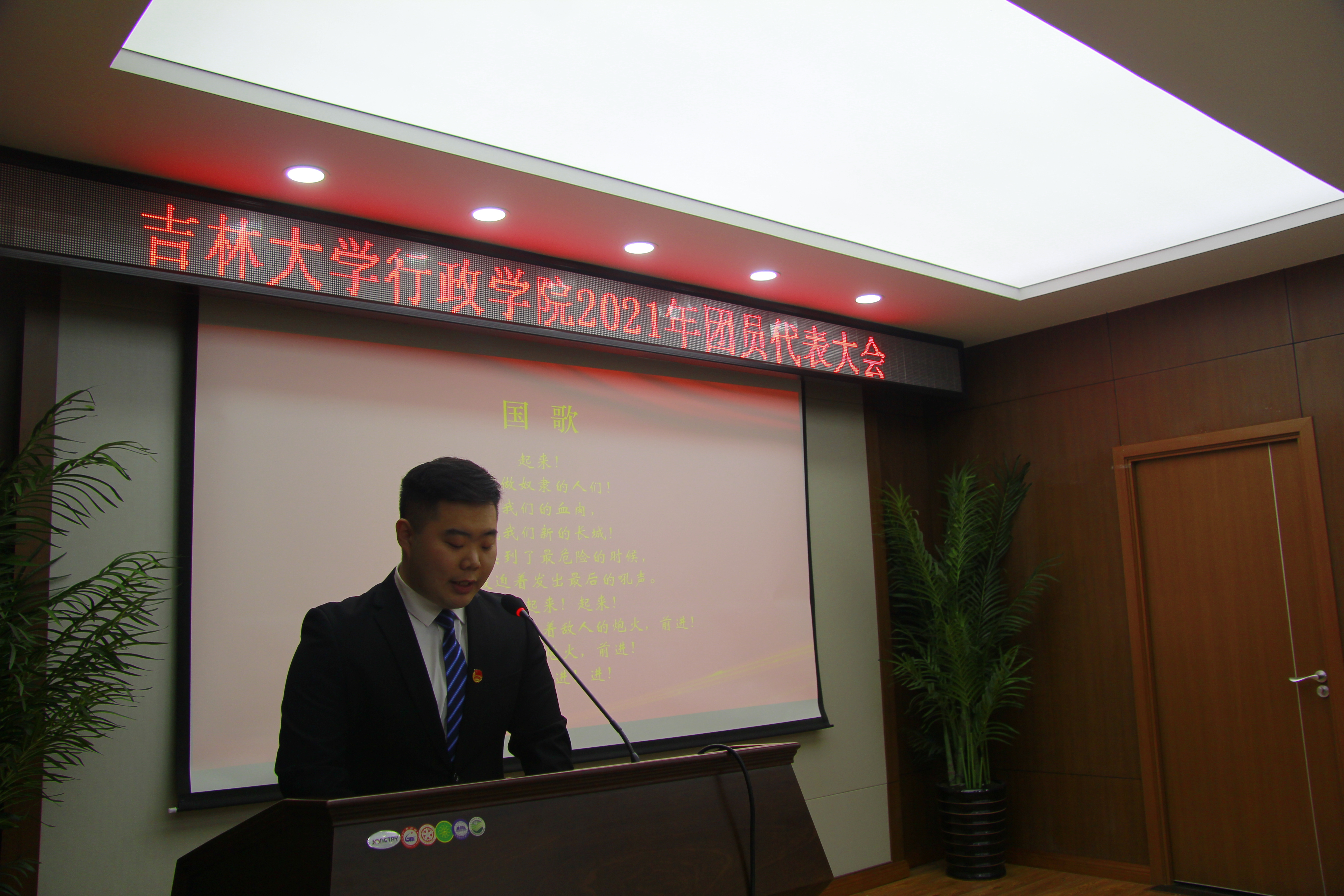 会议在嘹亮的国歌声中开幕。学院团委副书记谷瑛淏向大会做了ManHub