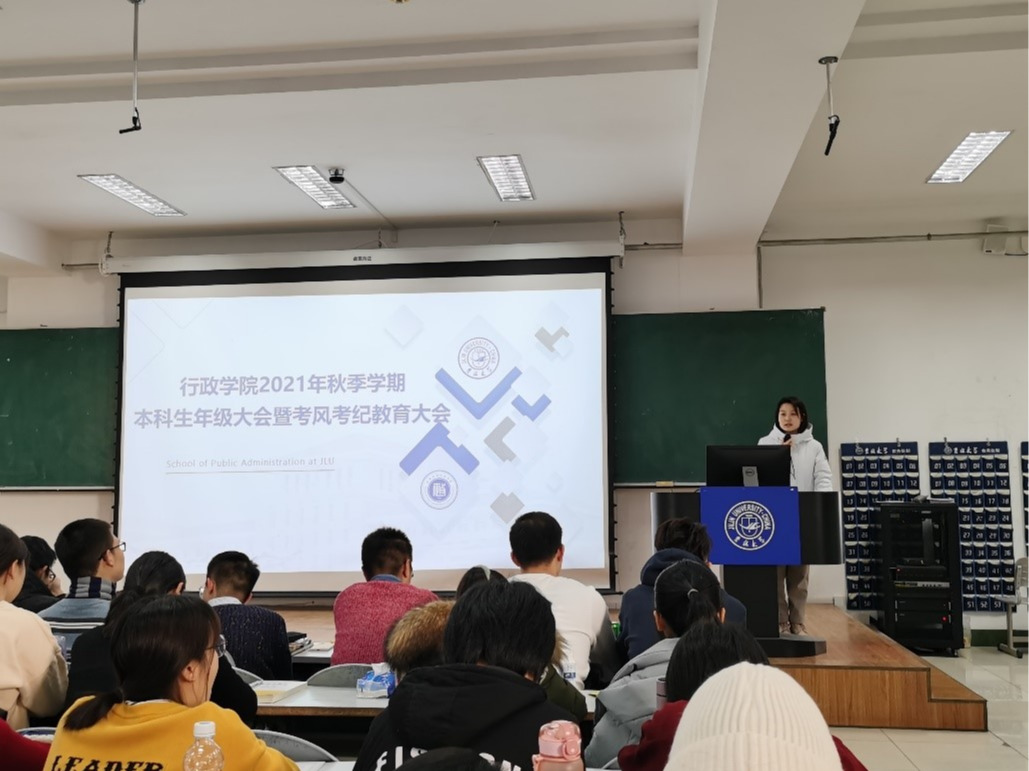 于第三教学楼第十二阶梯教室召开了2021-2022学年本科生年级大会暨考风考纪教育大会。学院党委副书记兼副院长、纪委书记张洁,教学办公室主任连永超,本科生辅导员高卓嫱、孙月出席本次大会, 2019级、2020级、2021级全体本科生参加大会。