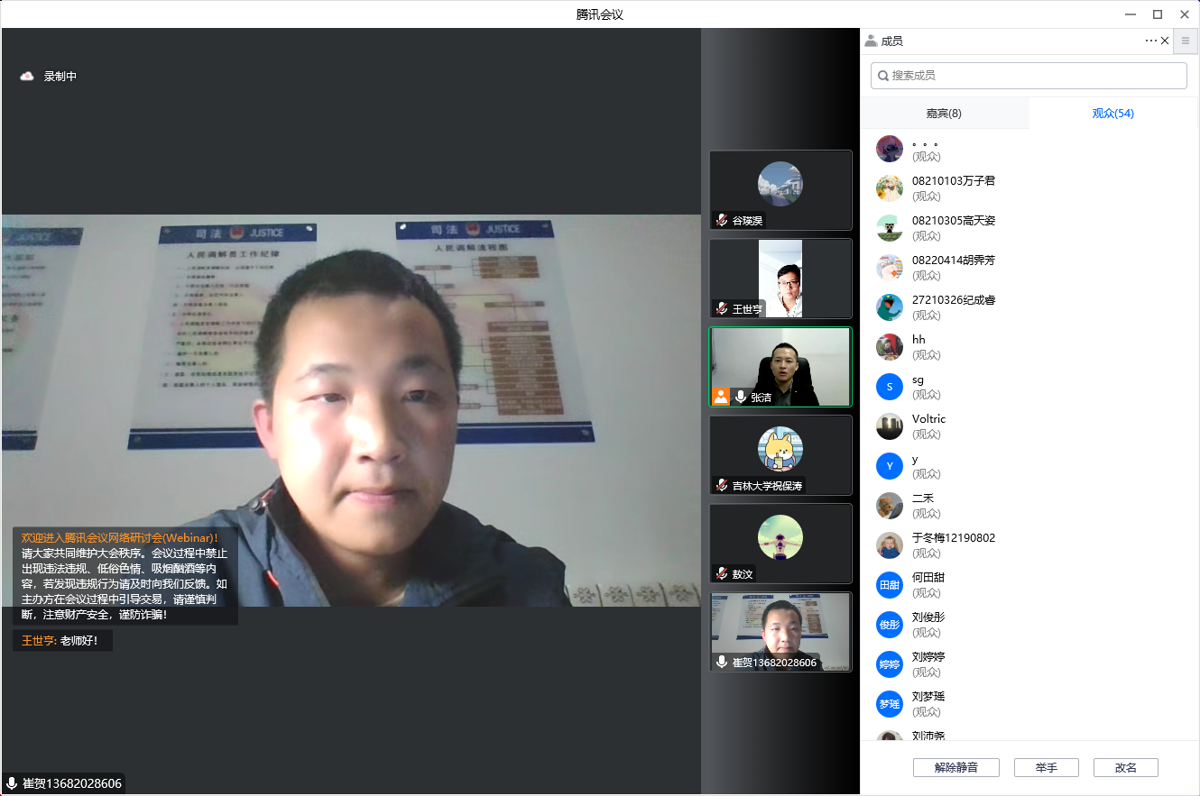 学生职业发展导师团成员吕雨函线上出席会议,学院本科生辅导员高卓嫱、谷瑛淏与在校生共同参会。会议由学院党委副书记兼副院长、纪委书记张洁主持。